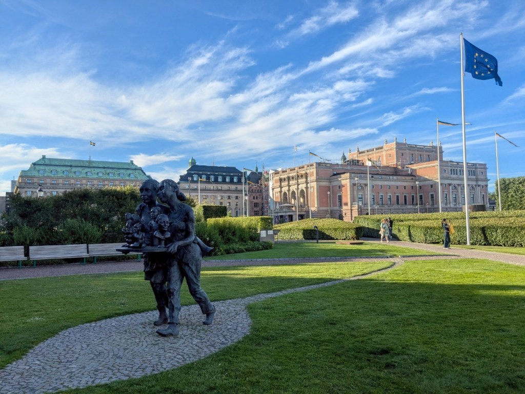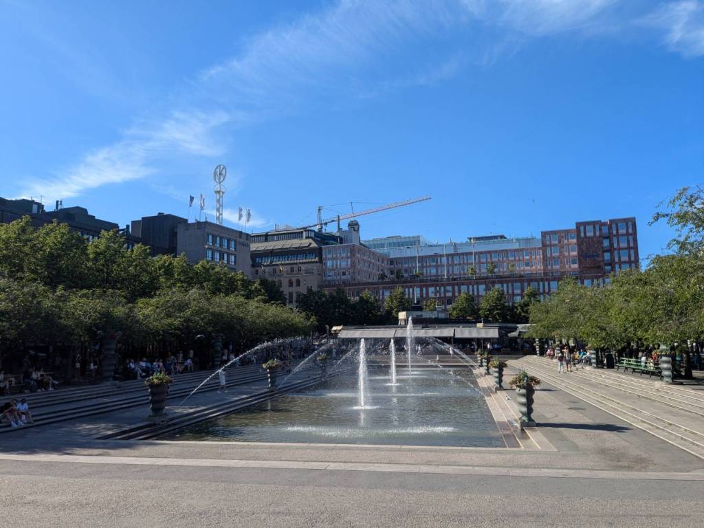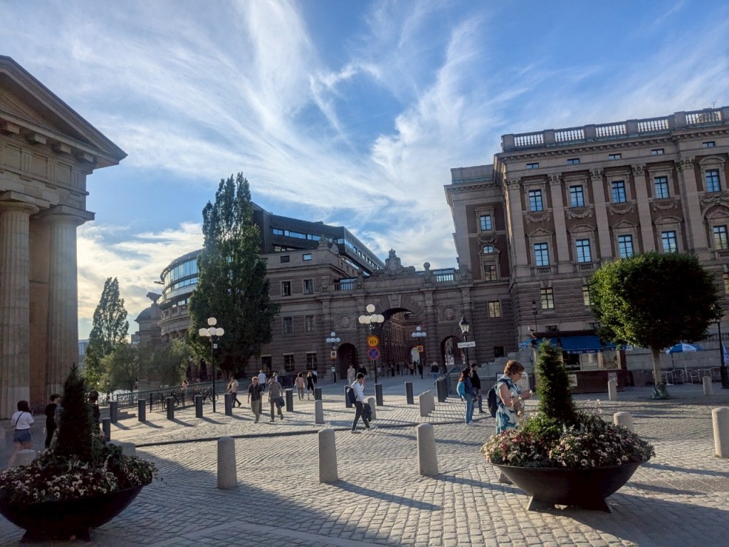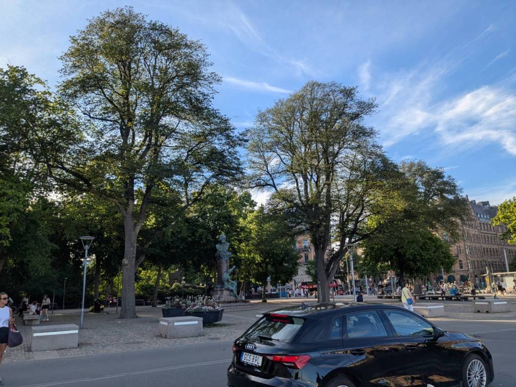 「市政廳」的西側面景色,「歐洲」大城市很常見到洗街車一大早打掃街區,因為前一晚酒吧與餐廳、或是路上聚集喝酒民眾會把馬路弄得髒亂不堪。