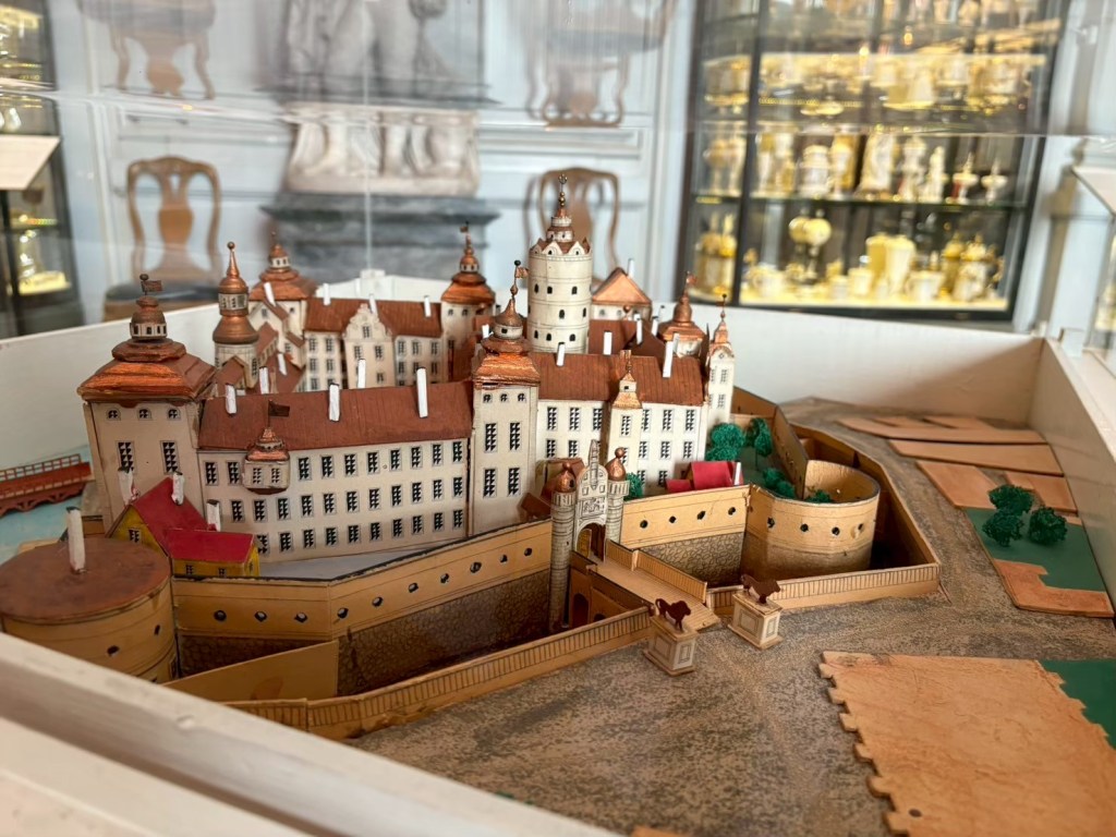 「穀倉塔」的街道旁有小型的青銅雕塑–「格但斯克歷史建築的縮影模型」,主要特徵有:高聳的階梯式山牆、紅瓦屋頂、多個尖塔與旗杆,以及厚重的磚石結構。這種觸覺式的模型雕塑在「歐洲」許多歷史城市中很常見,可作為視障人士觸覺體驗及一般歷史教育的工具。