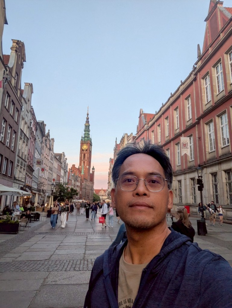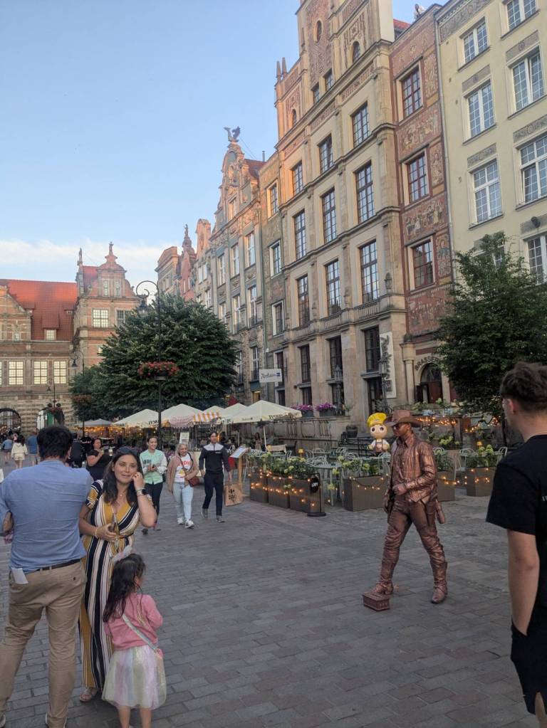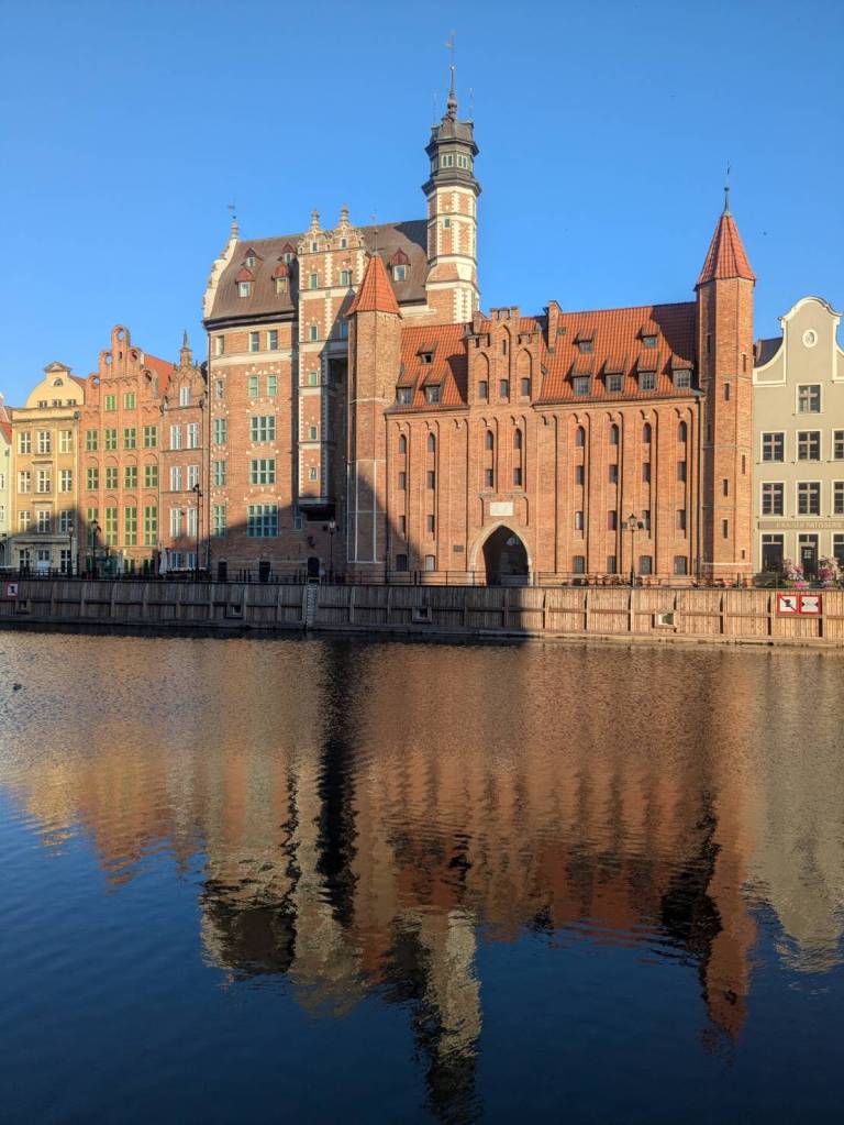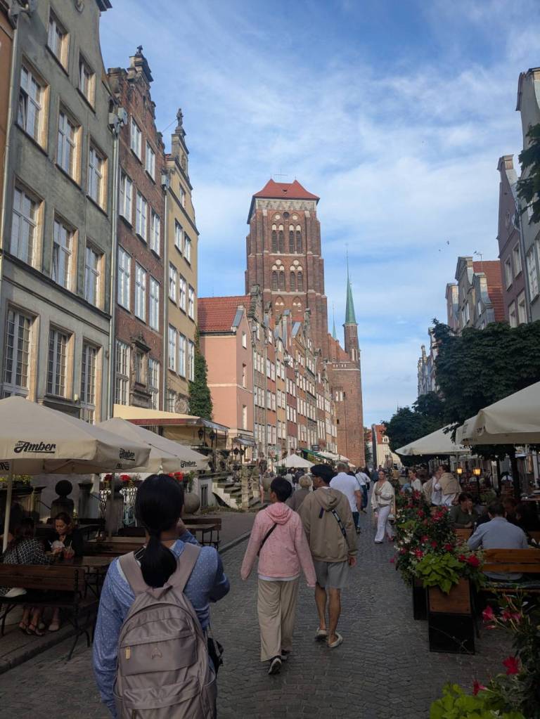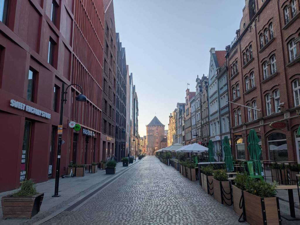 清晨時分的「格但斯克」老城,街道仍帶著一點濕潤的涼意。石板路在晨光下微微反光, 兩側彩色山牆屋靜靜排列,彷彿整座城市還沒完全醒來, 這樣的時刻漫步其中,更能感受「漢薩同盟」時代留下的歷史氛圍。