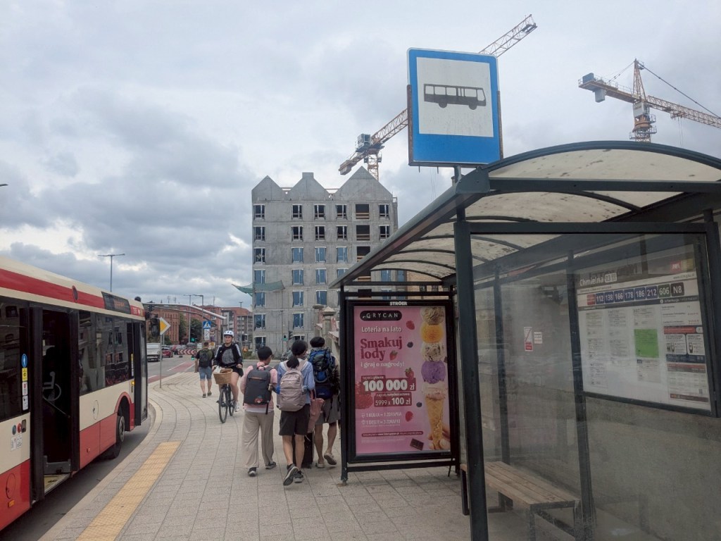 早上散步的另一個目的是來踏勘路面電車站的位置,若今天我們從最近的「Żabi Kruk 02站」坐到「格但斯克中央火車站」(Gdańsk Główny),1人車資4.80波蘭茲羅提(約新台幣41元),車程5分鐘,但從旅館拖行李過來還需要8-10分鐘,這是一個選項,另一個選項則是從旅館直接拖行李到「中央火車站」,腳程約15分鐘,免費。