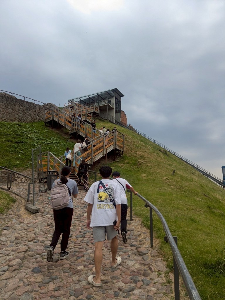 不到1分鐘就走到隔壁的「立陶宛大公宮」(Nacionalinis muziejus Lietuvos Didžiosios Kunigaikštystės valdovų rūmai)了,因為周一博物館休息,但還是能夠爬上「格迪米納斯塔」(Gedimino pilies bokštas)看風景喔!