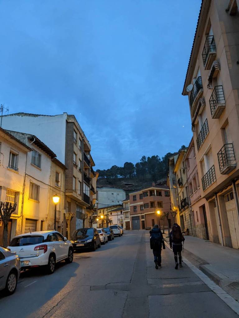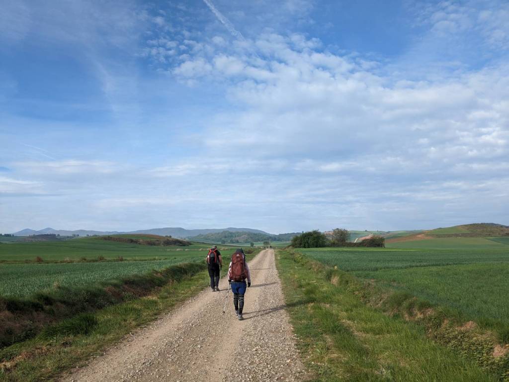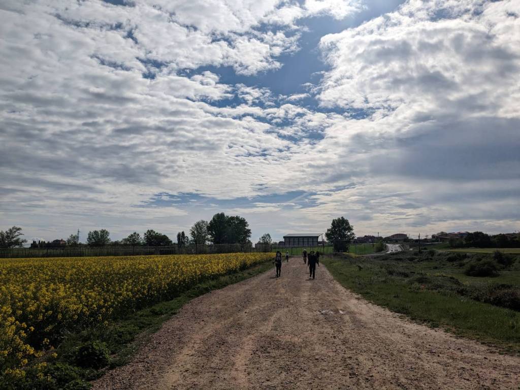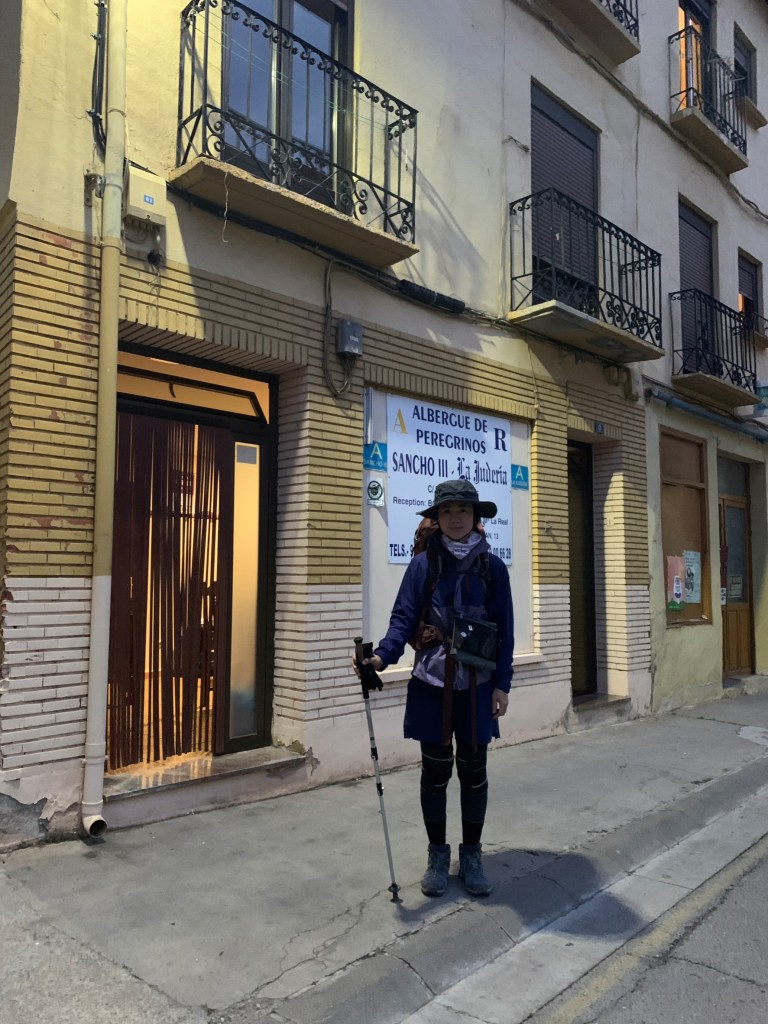 由於這間老建築隔音效果不好,樓上腳步聲很有立體感地震動到我們房間的牆壁與床鋪,要提早出發的人吵醒還在睡覺的人的情景已是朝聖日常;今天的路程不過20公里左右,慢理斯調地6點起床,排著隊在僅有兩間浴廁盥洗,沒熱水之下勉強用洗衣服的冷水沖泡即溶咖啡,我們就窩在窄小的沙發與圓桌吃起早餐來。整理行李後,大約7點左右,我們從這所私人庇護所出發,踏上朝聖者已絡繹不絕的「朝聖之路」,也告別了收留我們一晚的「納赫拉」古城。