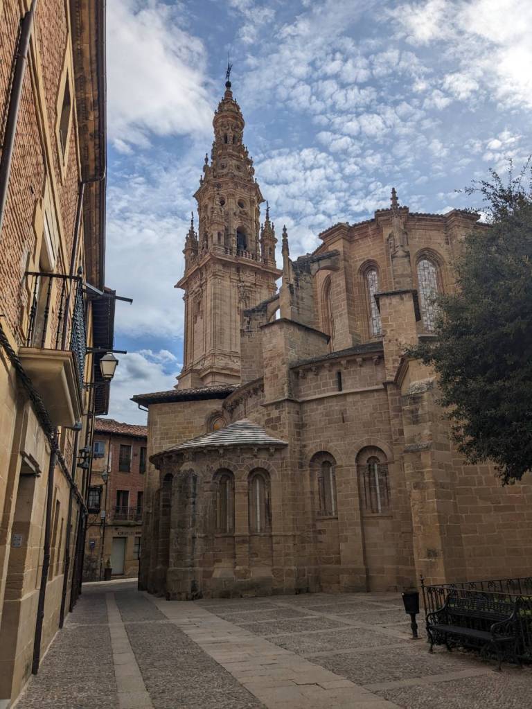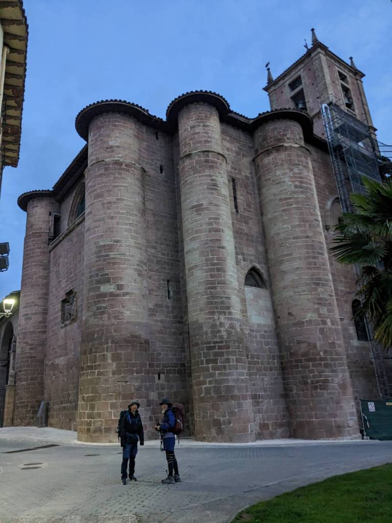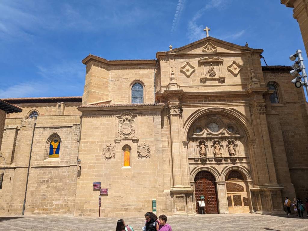 將生鮮食品拿回庇護所放完後,我們來到「聖多明各-德拉卡爾薩達主教座堂」(Catedral de Santo Domingo de la Calzada)參觀,她始建於11世紀末期,建築風格涵蓋了5個世紀,從頂部的13世紀羅馬式建築,到位於鐘樓所在的獨立式塔樓為18世紀巴洛克式建築,教堂從外觀到內裝都非常宏偉富麗,歪樓的是裡面養的公雞與母雞也是參觀景點之一。