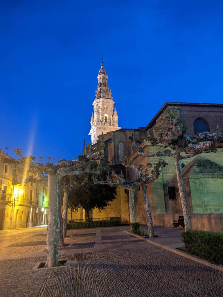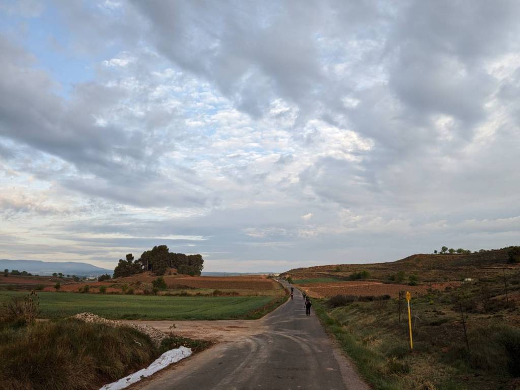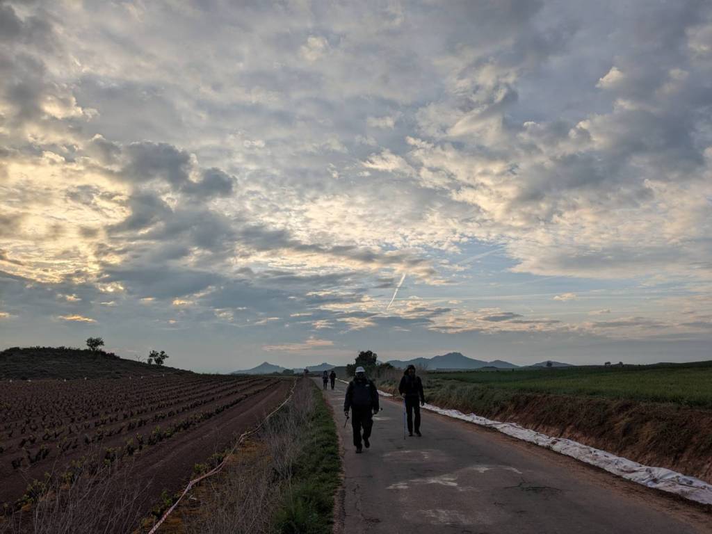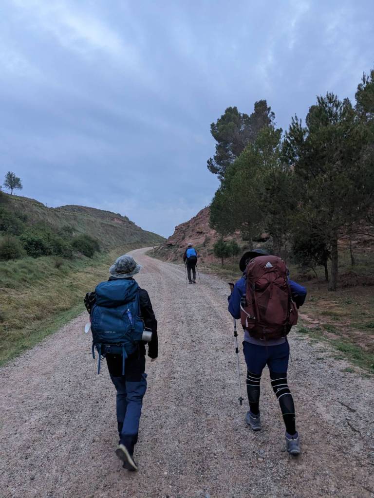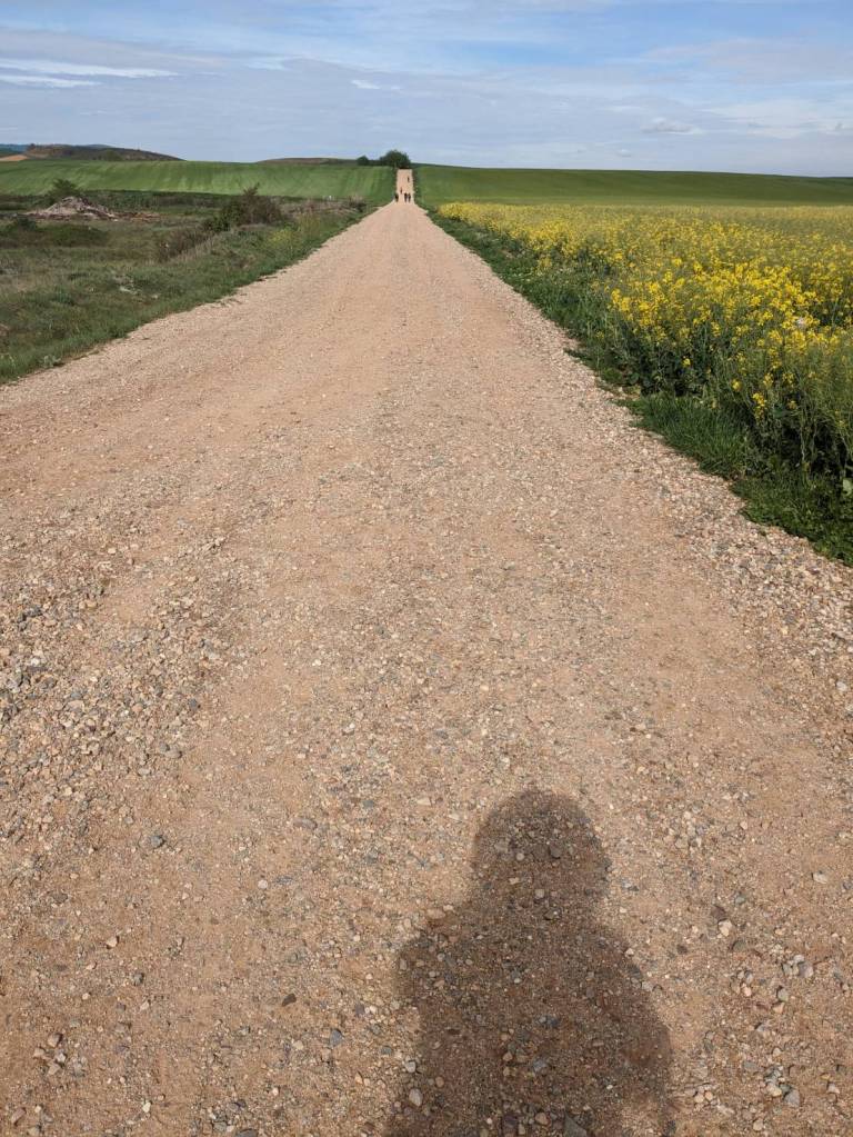 看著他們走在前路盡舖著黯淡街燈,天空尚處破曉微明之際下,突然覺得這10天以來每日的行程都是既定而規律的,雖不是在跟別人比拚步伐,卻也是在跟時間賽跑。每天早上起床、吃飯、走路、又吃飯、晚上再睡覺,一系列拍子在每一天按節奏出現,對剛脫離上班族的我,這每日單調的循環,雖然充實有趣,但讓我有種到底是在追趕旅程,還是旅程在追趕我的錯覺。是的,我走在「聖雅各之路」上,在西班牙去去就回。