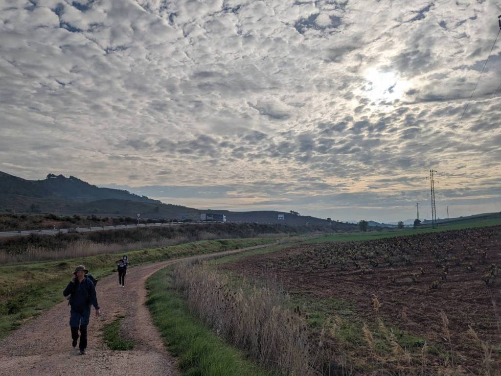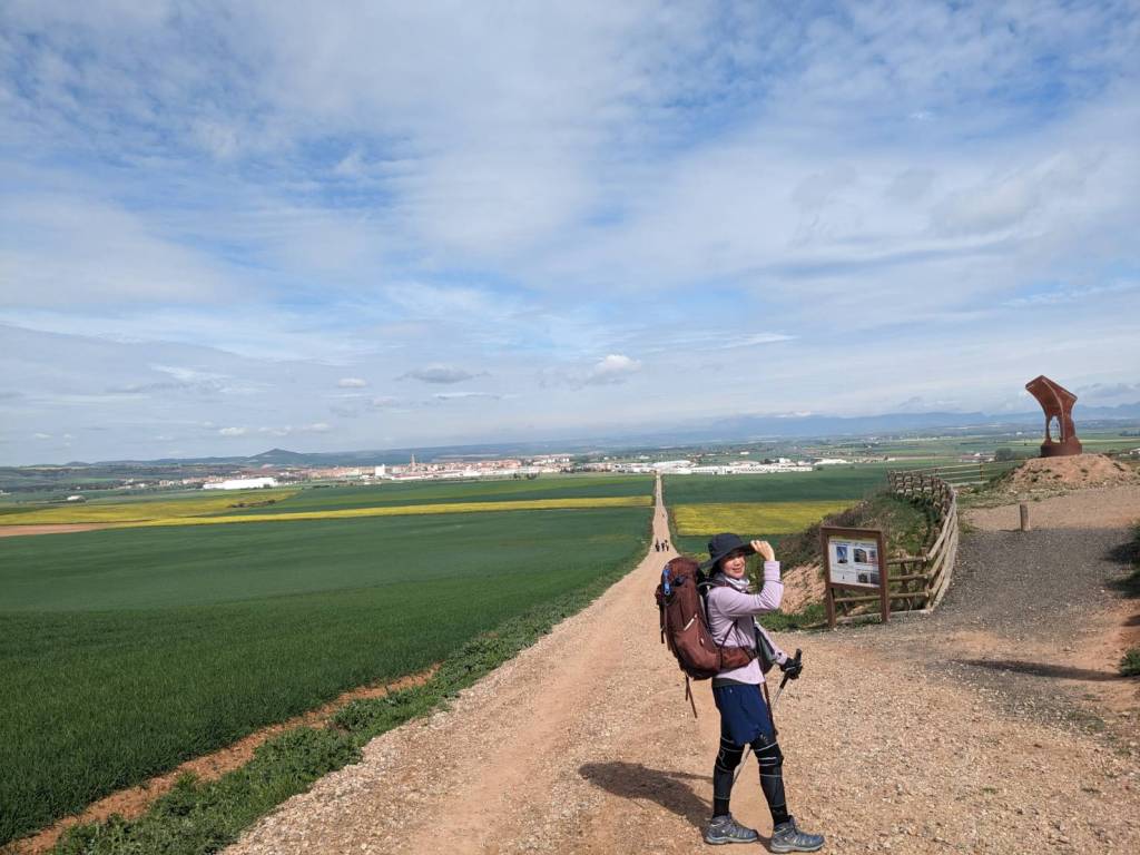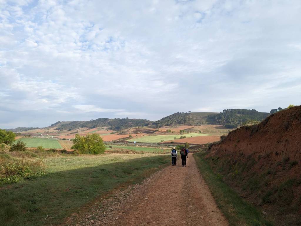 休息不到半小時,我們繼續向西一路跨越起起伏伏的山坡,沿途一望山丘彷如油畫布似平鋪無垠,渺小的旅人又像遍撒在顏料盤中稀落但又無可抹去的點點配色,從這裡離「聖多明各-德拉卡爾薩達」(Santo Domingo de la Calzada)還有6公里。