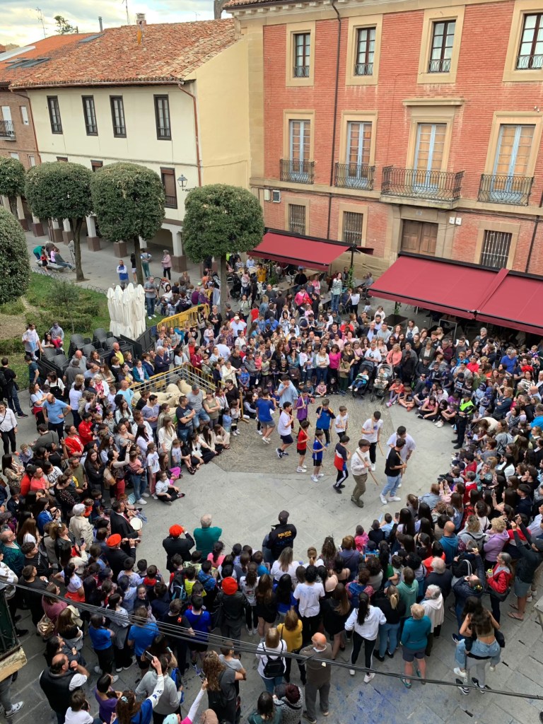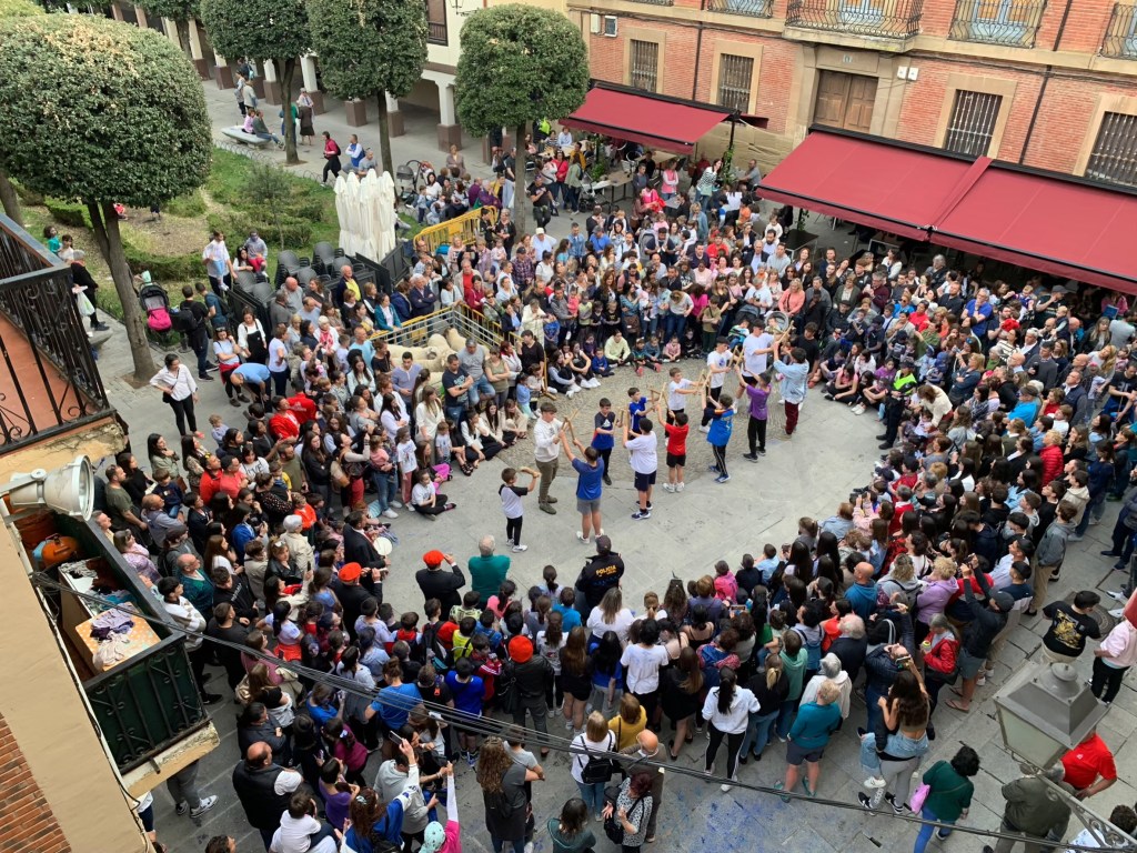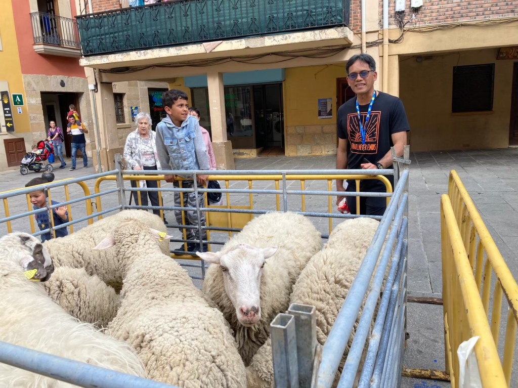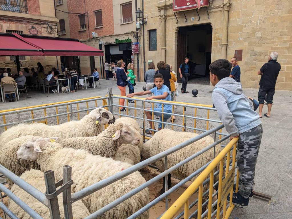 繞回「拉阿拉梅達廣場」(Plaza de la Alameda),發現那邊也在準備著表演活動,一群綿羊被圍欄圈在一處,小朋友們在旁邊逗玩著牠們。
