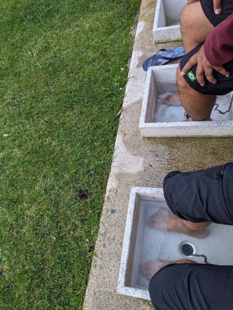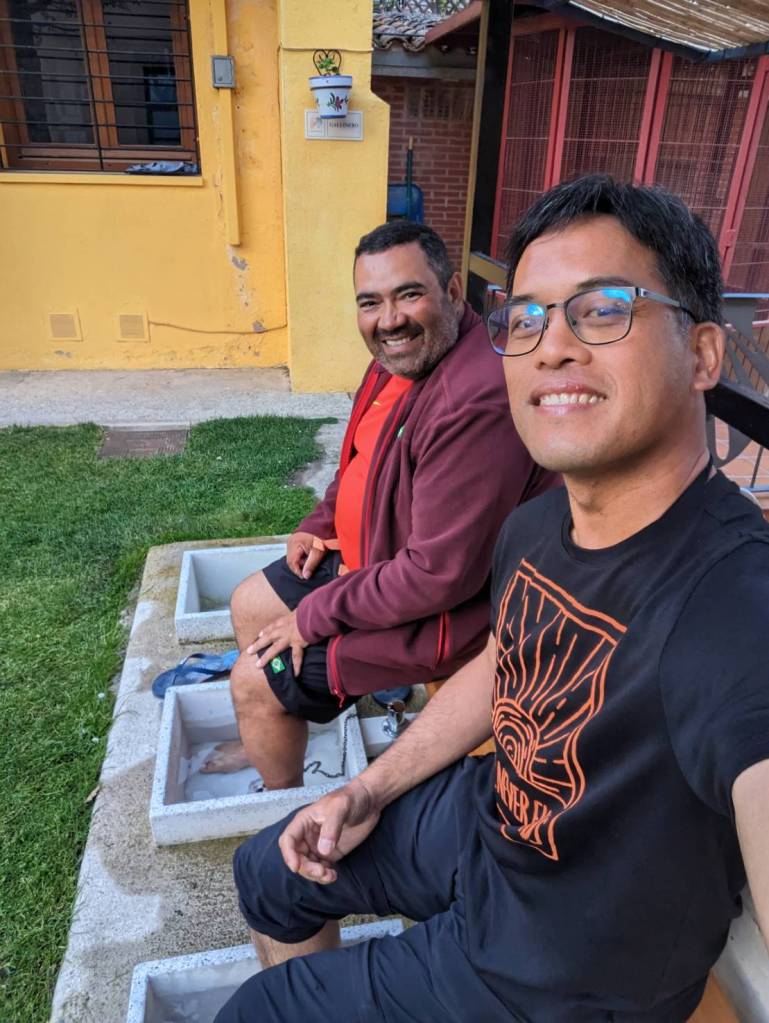 9點時天色開始變暗,Luis把我抓去後院泡腳池浸冷水,他說對身體好,而我們的腳卻快凍僵了,真是一段好笑的回憶。