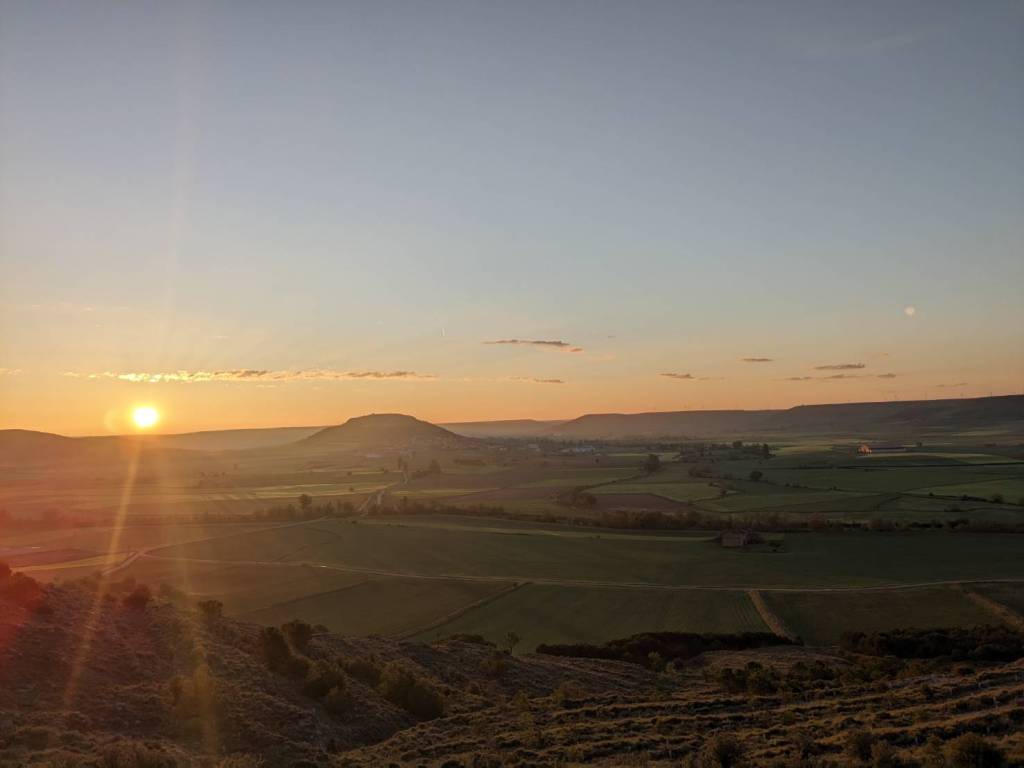 晨曦已點點灑落山巒輪廓,似乎是一牀淡黃色薄紗蓋在這片「卡斯提亞平原」上方。是的,我走在「聖雅各之路」上,在西班牙去去就回。