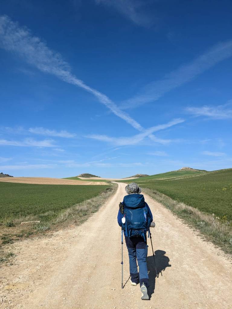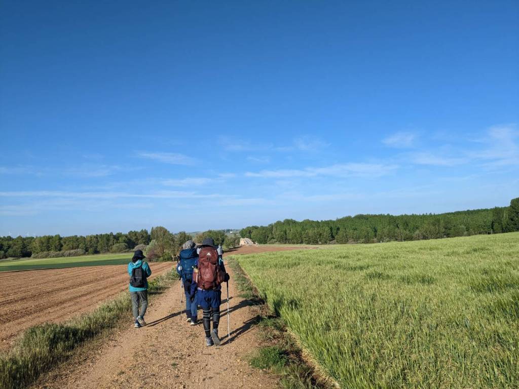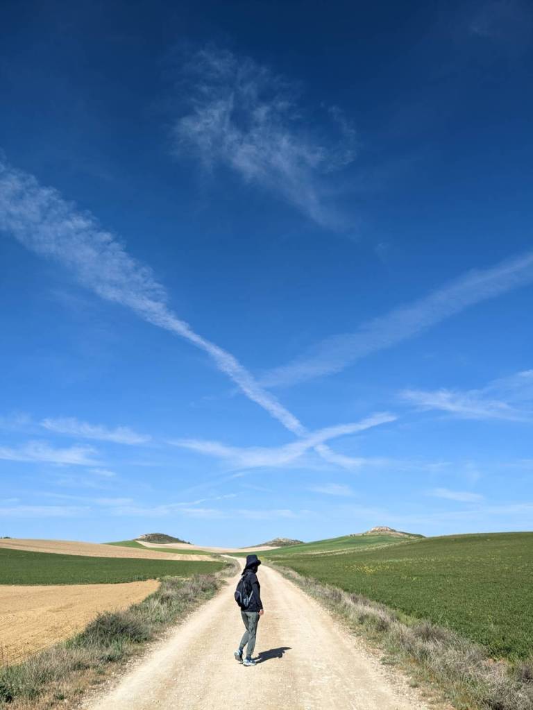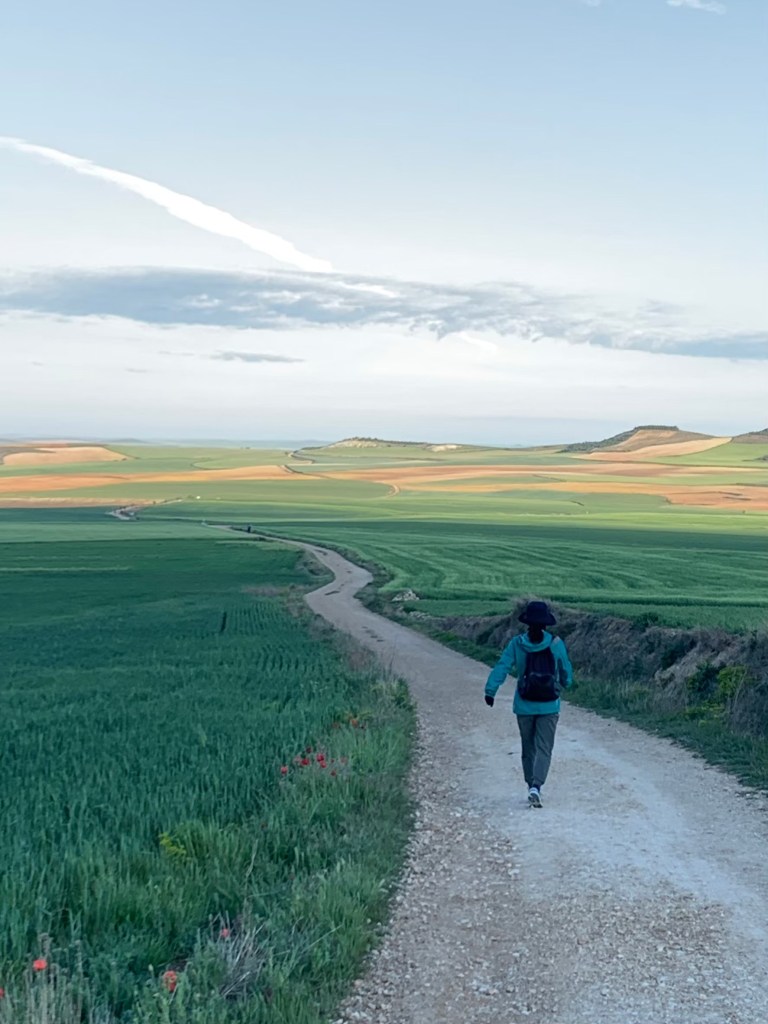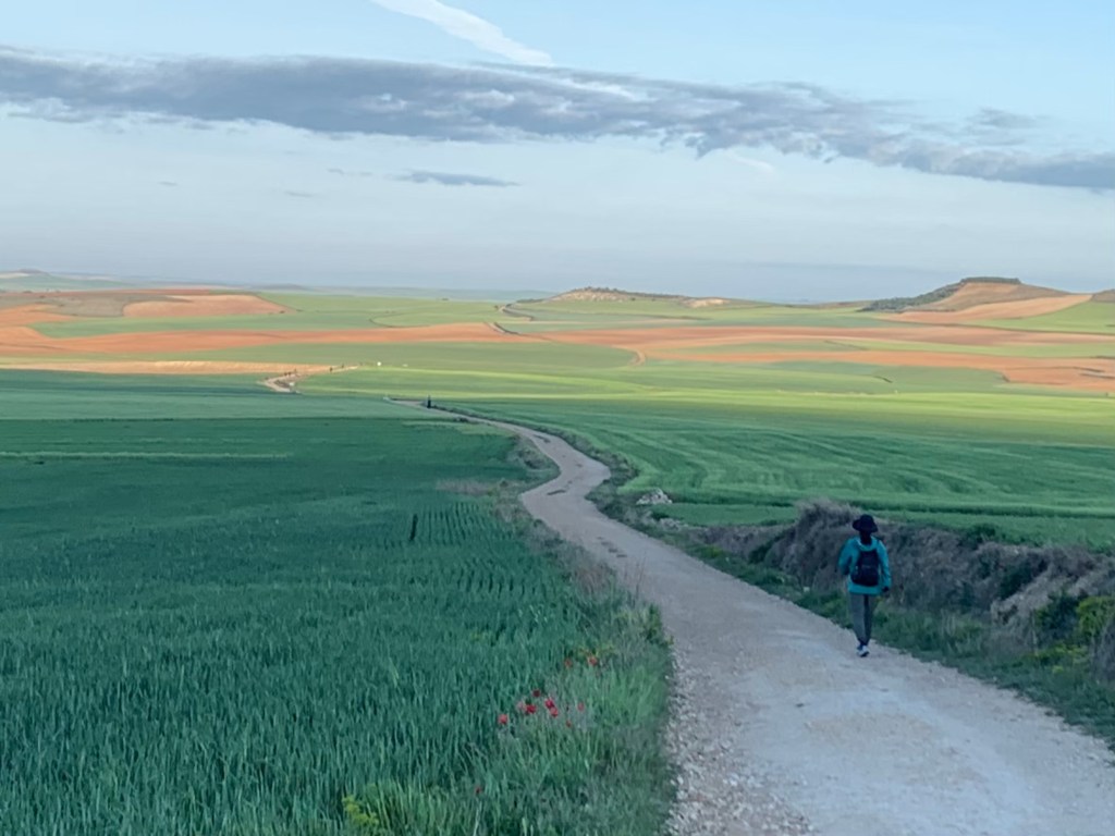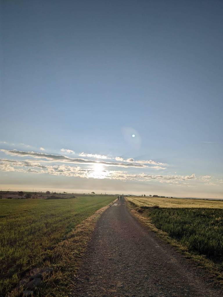 稍作休息後繼續前進,離開小鎮即要面對長達8公里的田野之路–「距離聖地牙哥還有424公里」。