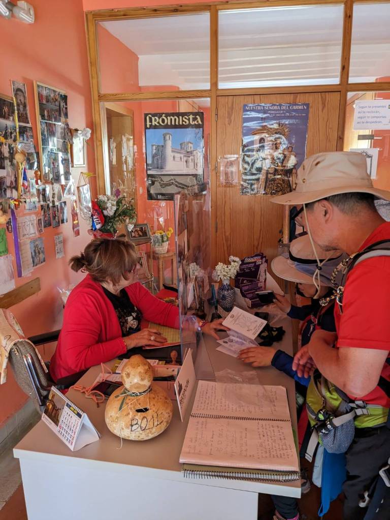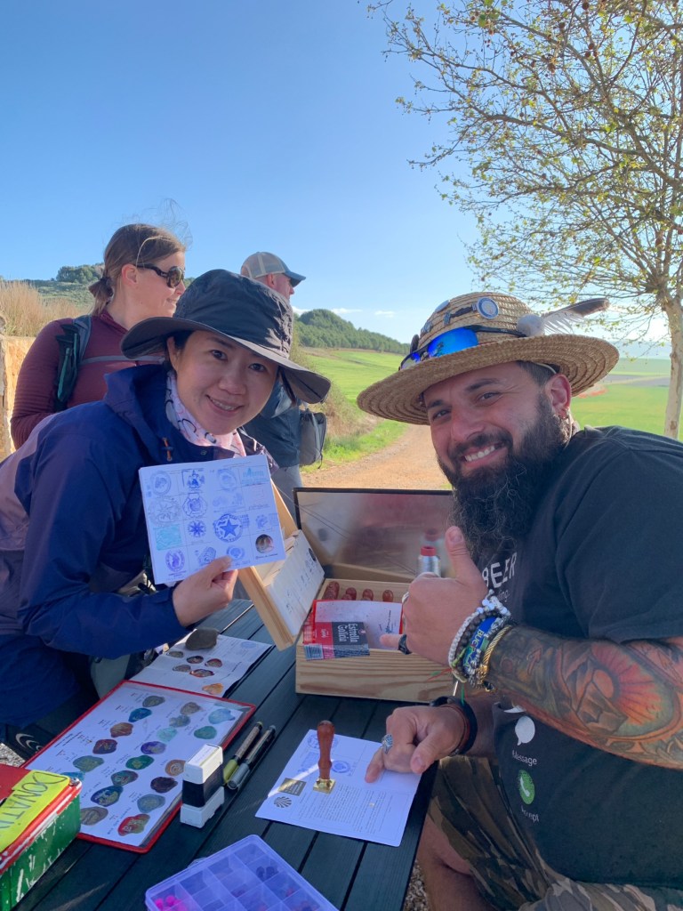 我們在第一段路程的8公里處,選擇有蓋紀念章的休息站歇腳停留,並donation捐獻獲得了一枚漂亮的的朝聖者章,也讓當天入住的女老闆稱羡不已。