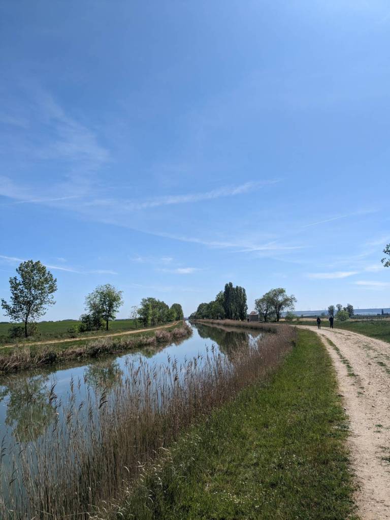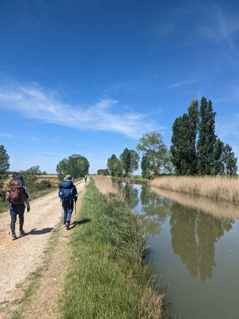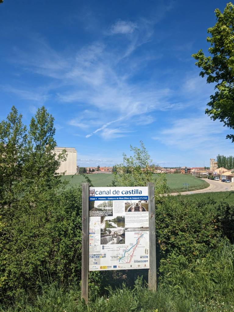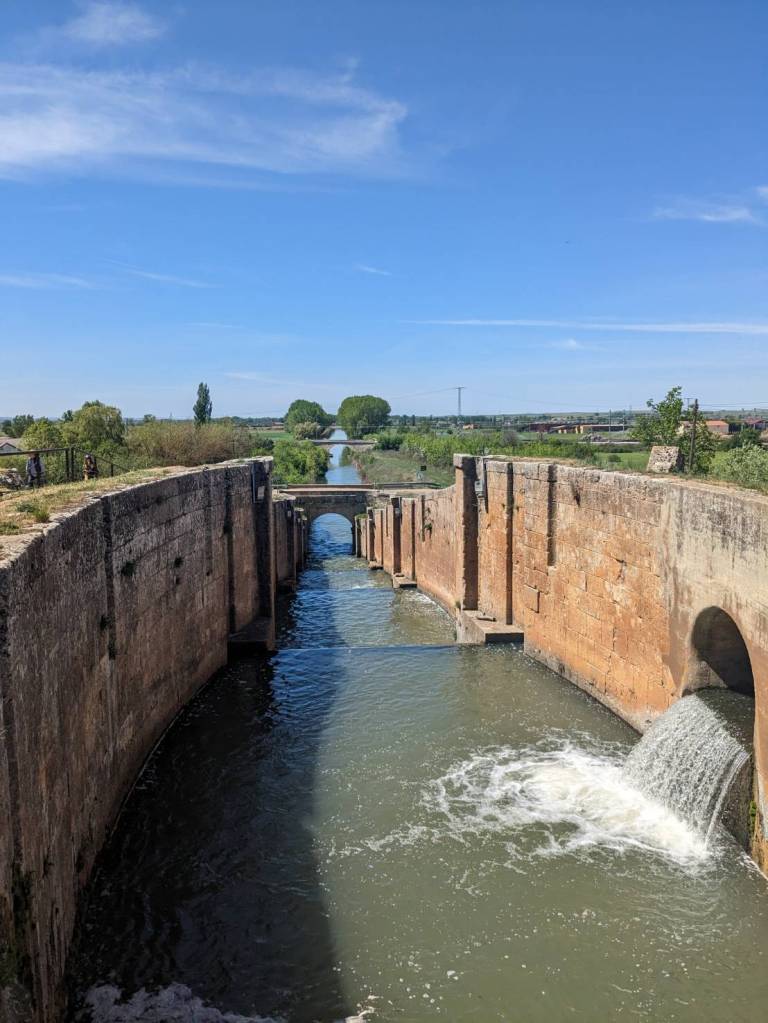走出小鎮,來到「卡斯提亞運河」(Canal of Castilla),它是1753年至1849年進行的水利建設,北段部分是北從「阿拉爾德爾雷」(Alar del Rey)南至「里瓦斯德坎波斯」(Ribas de Campos,全長75公里,因為匯集很多凹凸不平的支流,所以有24個船閘。