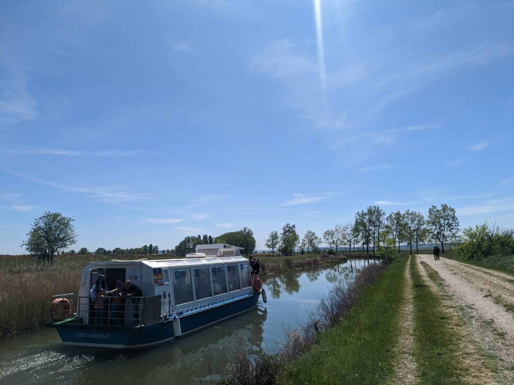 跟小渡輪上的家庭們揮手打招呼,不知道他們是遊河欣賞田園風景,還是觀覽朝聖者在烈日下的進擊。