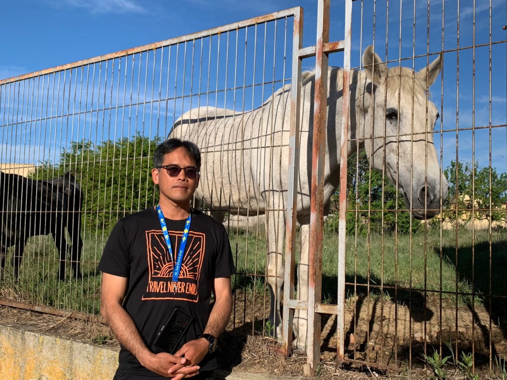 7點一到,我們三劍客再度出發遊覽小鎮一圈,首先來到公園–placentero Park,它位於小鎮的心臟地帶,旁邊有教堂及圓形噴泉,另一側有牧場,可以看到可愛的馬匹。