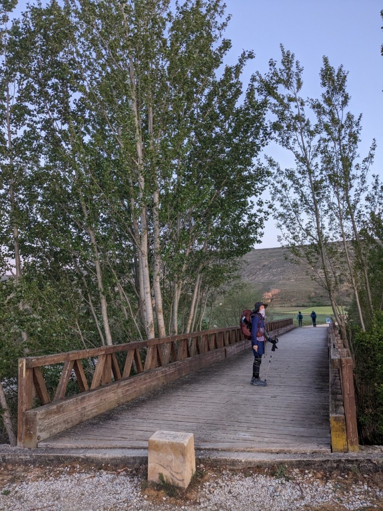 一路向西進入田野,走約2公里後經過跨越「奧德拉河」(Odra)的木橋–「巴爾賽納橋」(Puente de Bárcena),接下來就是要步上通往「摩斯德拉瑞斯高地」(Alto de Mostelares)的斜坡了。