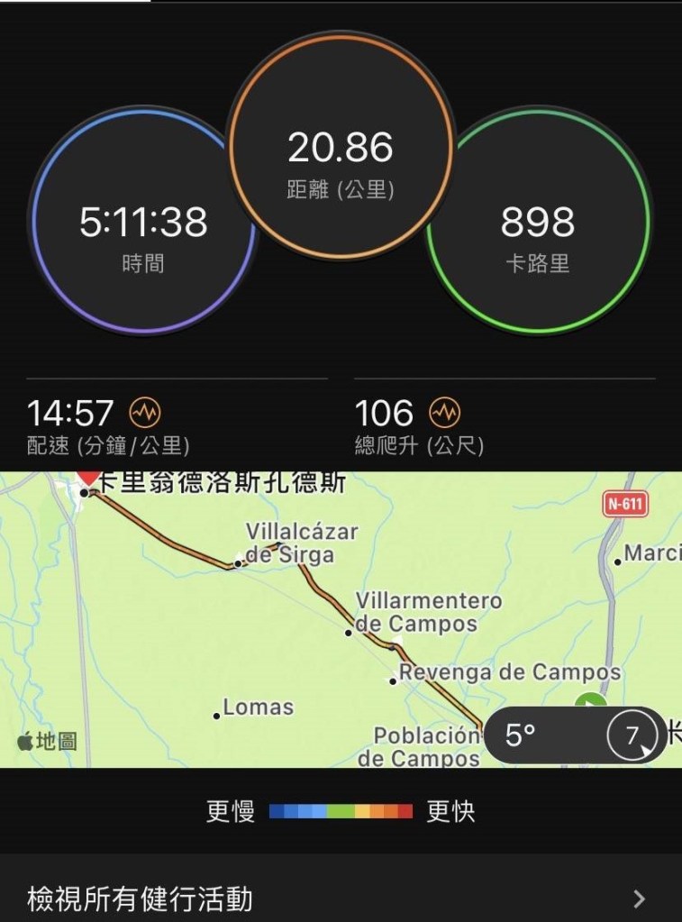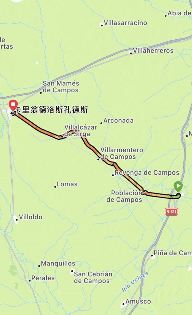 向西2公里,於11點經過小鎮–「比利亞爾卡薩爾德西爾加」(Villalcázar de Sirga)。