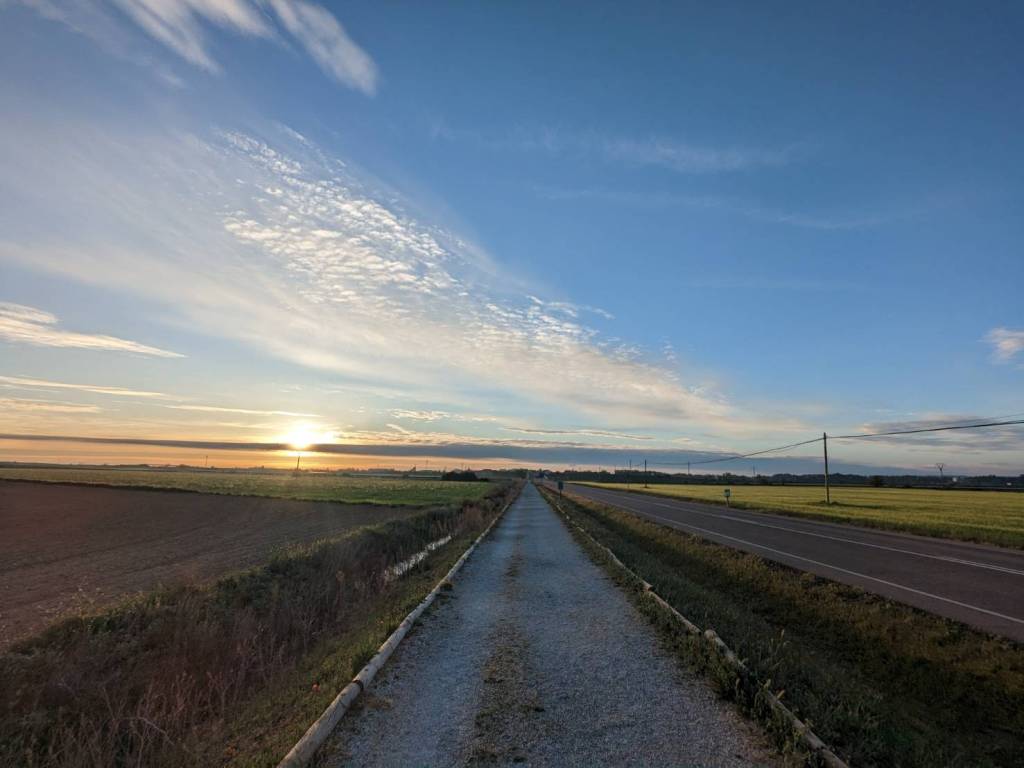 向西沿著公路走4公里,沿途盡是麥田或休耕農地。