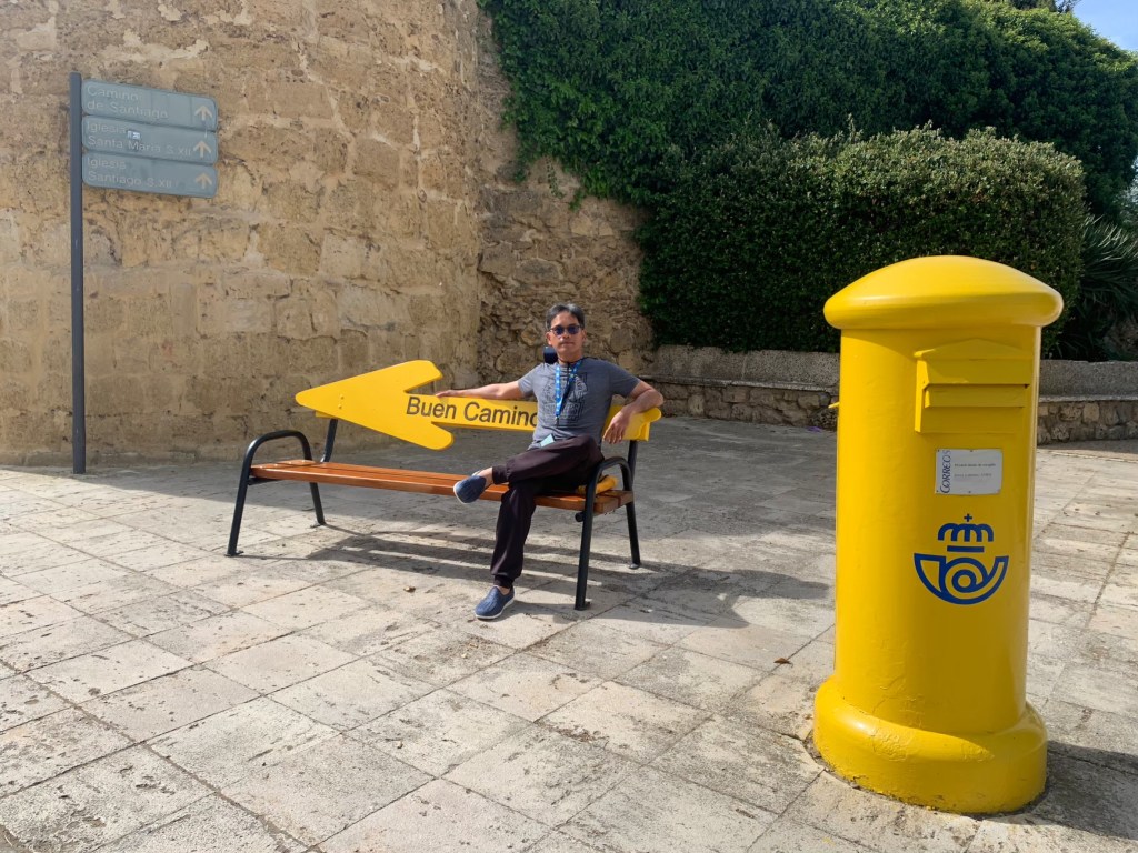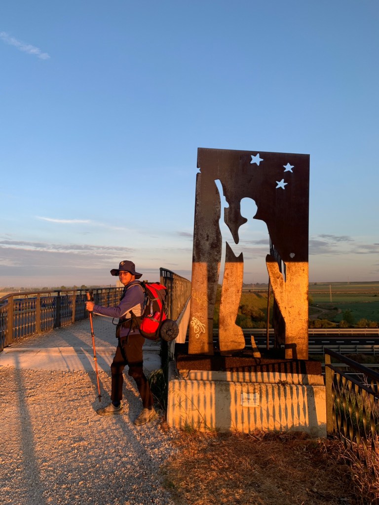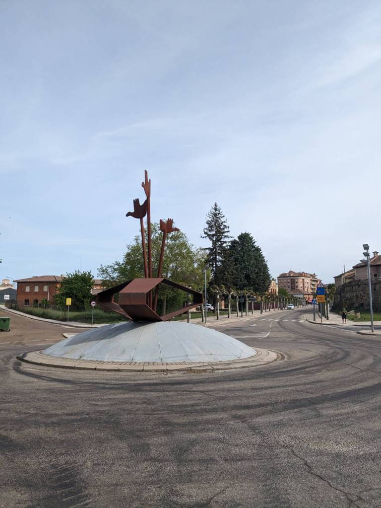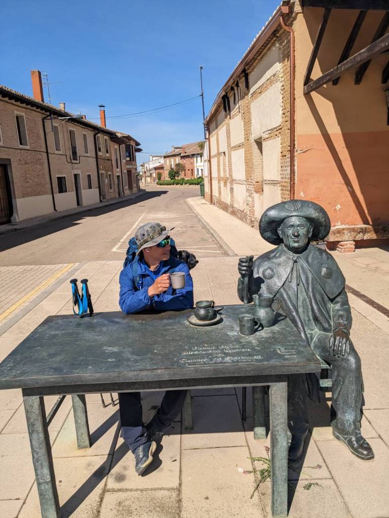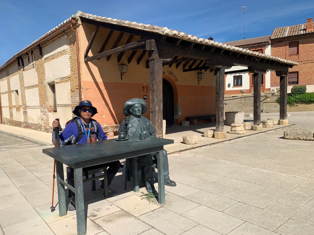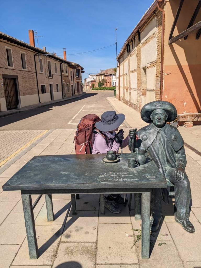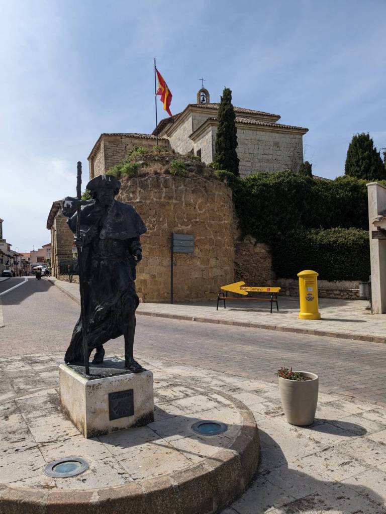 在教堂往西的路口處,有一座顯目的朝聖者「帕博羅·帕沃」(Pablo Pavo)的雕塑