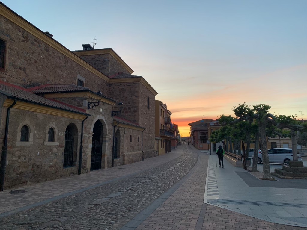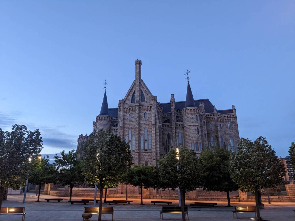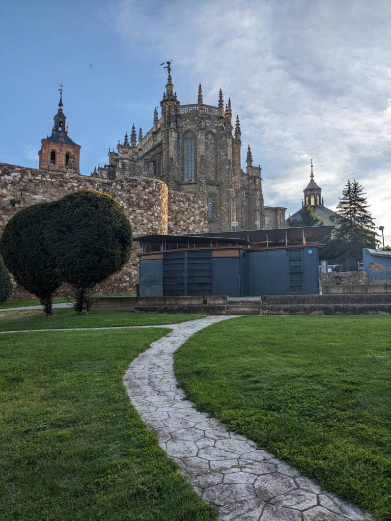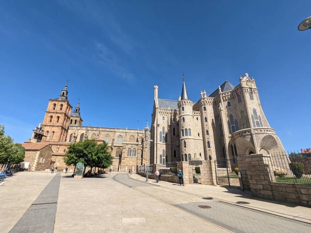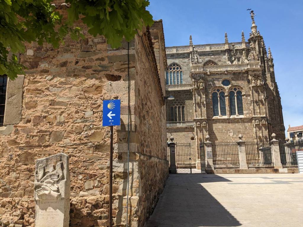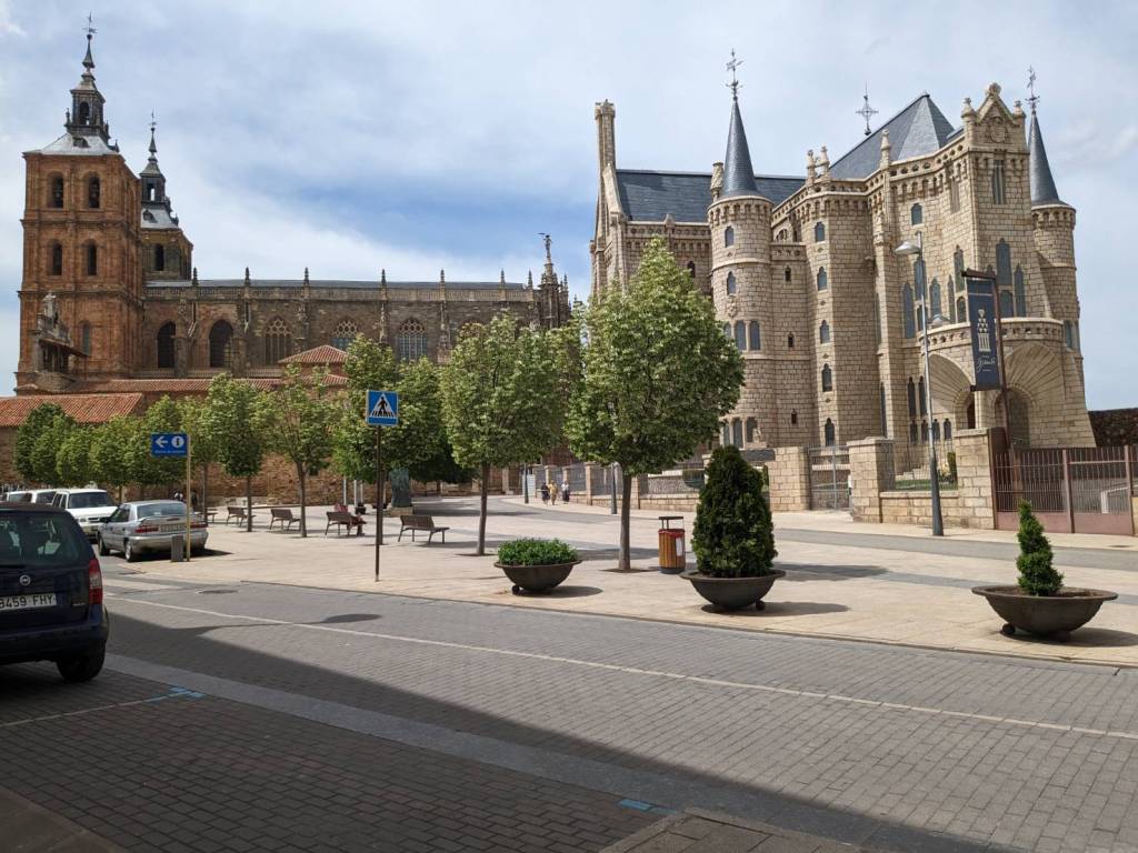 找住宿旅館的路上,經過了「阿斯托加」的著名地標–「阿斯托加主教宮」及「阿斯托加主座教堂」(La Catedral de Santa María de Astorga),兩座建築相互襯托,在各自獨特建築色彩的相互輝映下,顯示出堂皇富麗的藝術魅力。教堂前的「卡斯楚葉杜爾多廣場」(Plaza de Eduardo de Castro)上人潮還不多。