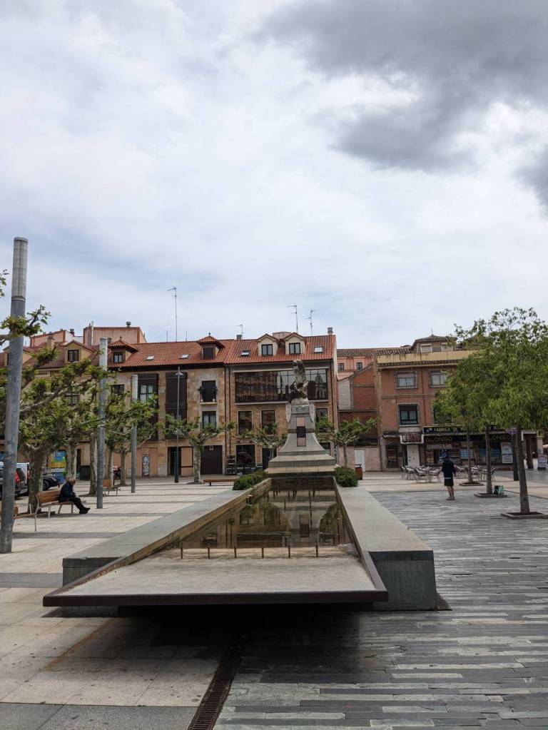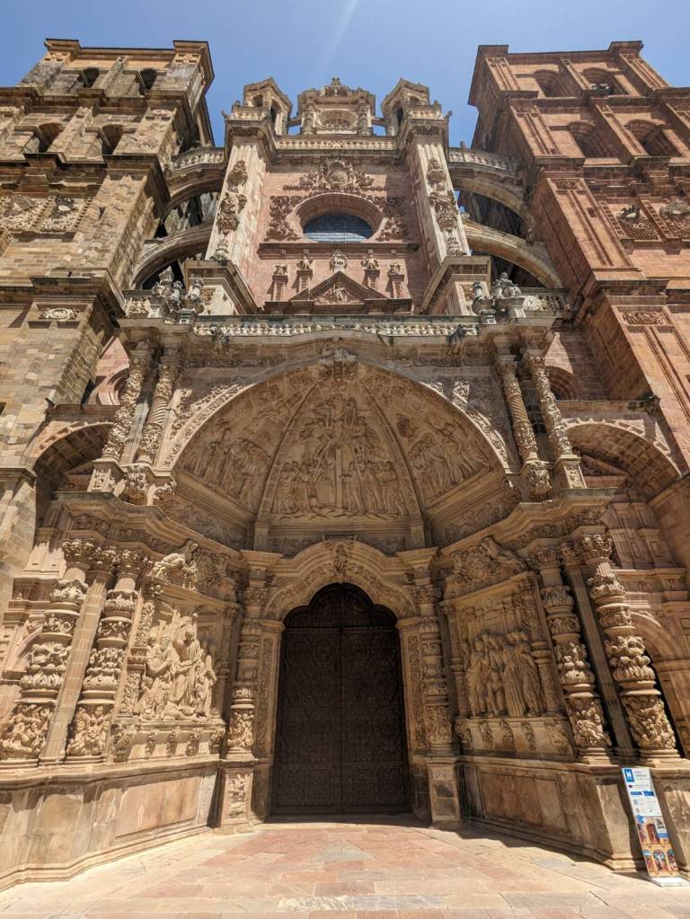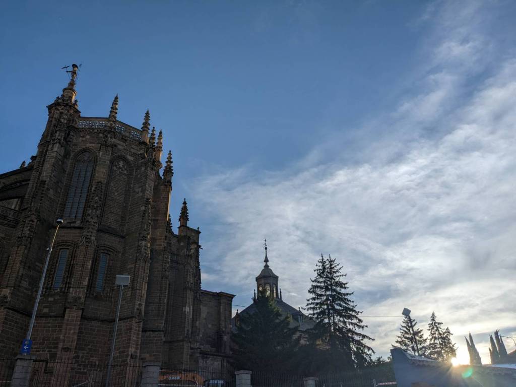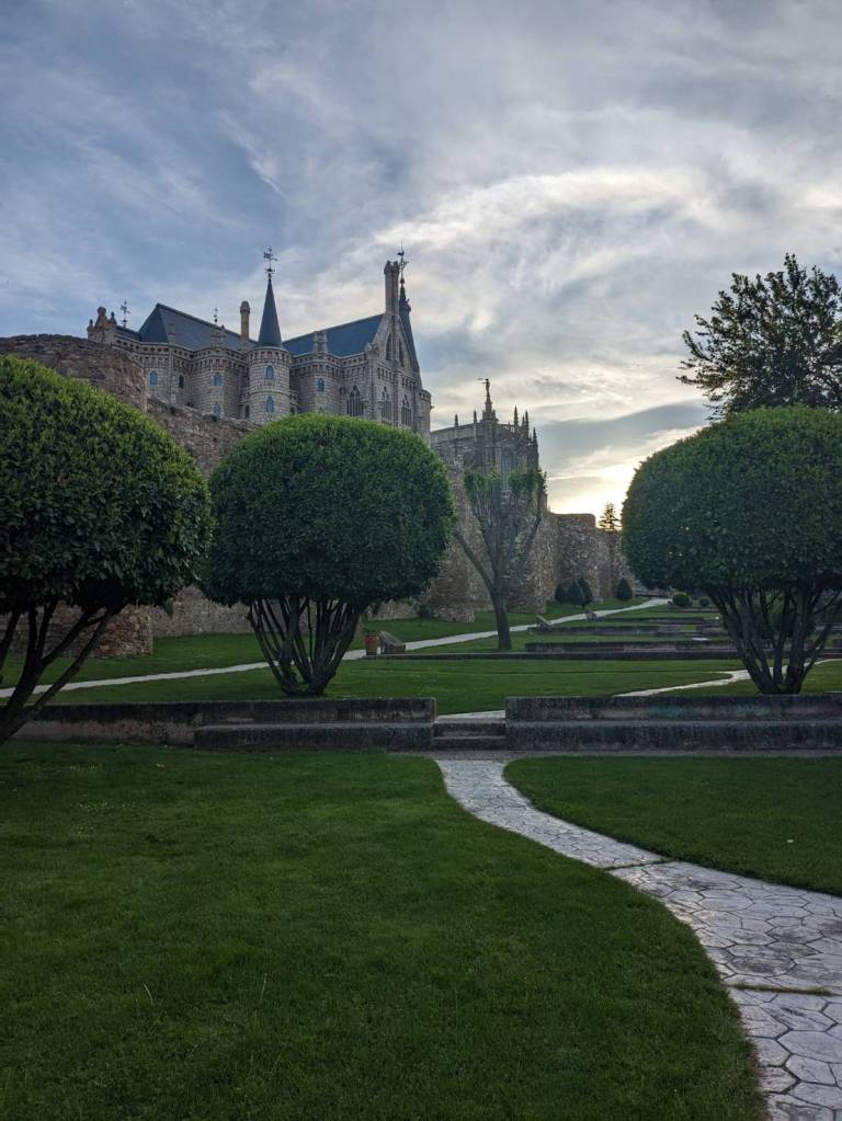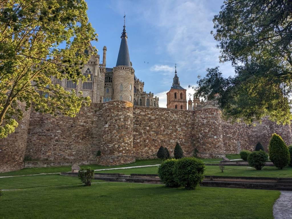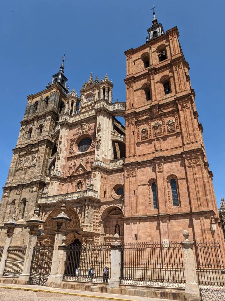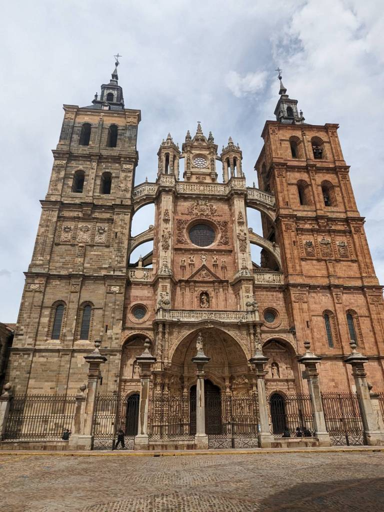 找住宿旅館的路上,經過了「阿斯托加」的著名地標–「阿斯托加主教宮」及「阿斯托加主座教堂」(La Catedral de Santa María de Astorga),兩座建築相互襯托,在各自獨特建築色彩的相互輝映下,顯示出堂皇富麗的藝術魅力。教堂前的「卡斯楚葉杜爾多廣場」(Plaza de Eduardo de Castro)上人潮還不多。