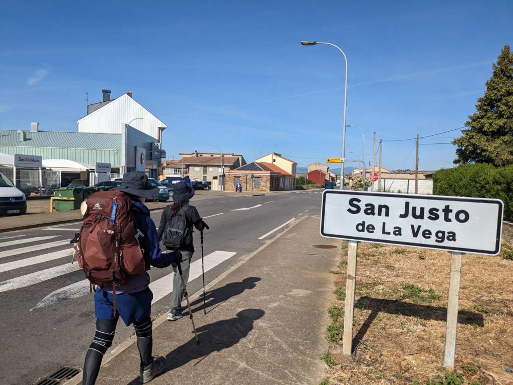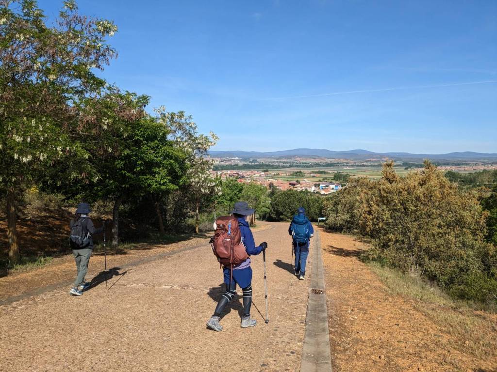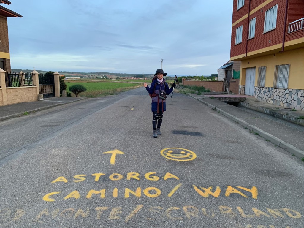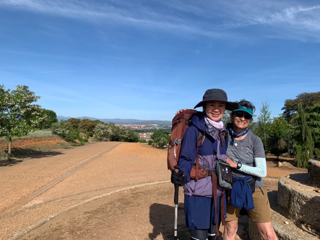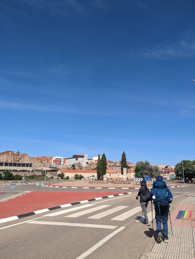 已在山腰處看到小鎮–「聖胡斯托德拉韋加」(San Justo de la Vega)的身影,而在石十字架–Crucero de Santo Toribio休息時,巧遇美國女子Babarra,她的腳也是有些水泡及酸痛。在這裡也可看到「阿斯托加」(Astorga)的遠景。