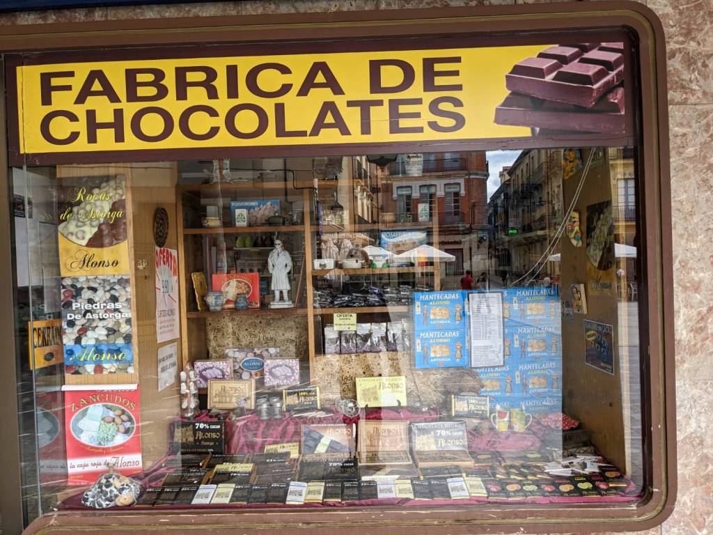 接著在逛「阿斯托加」市區時,碰巧遇到了義大利情侶,他們介紹我們要試試這裡的巧克力,果然整條街居然有好幾間賣巧克力商品的店鋪,有冰淇淋及各式甜點,價格也不算貴,著實深深吸引著我們。後來我買了一片純度90%的巧克力。