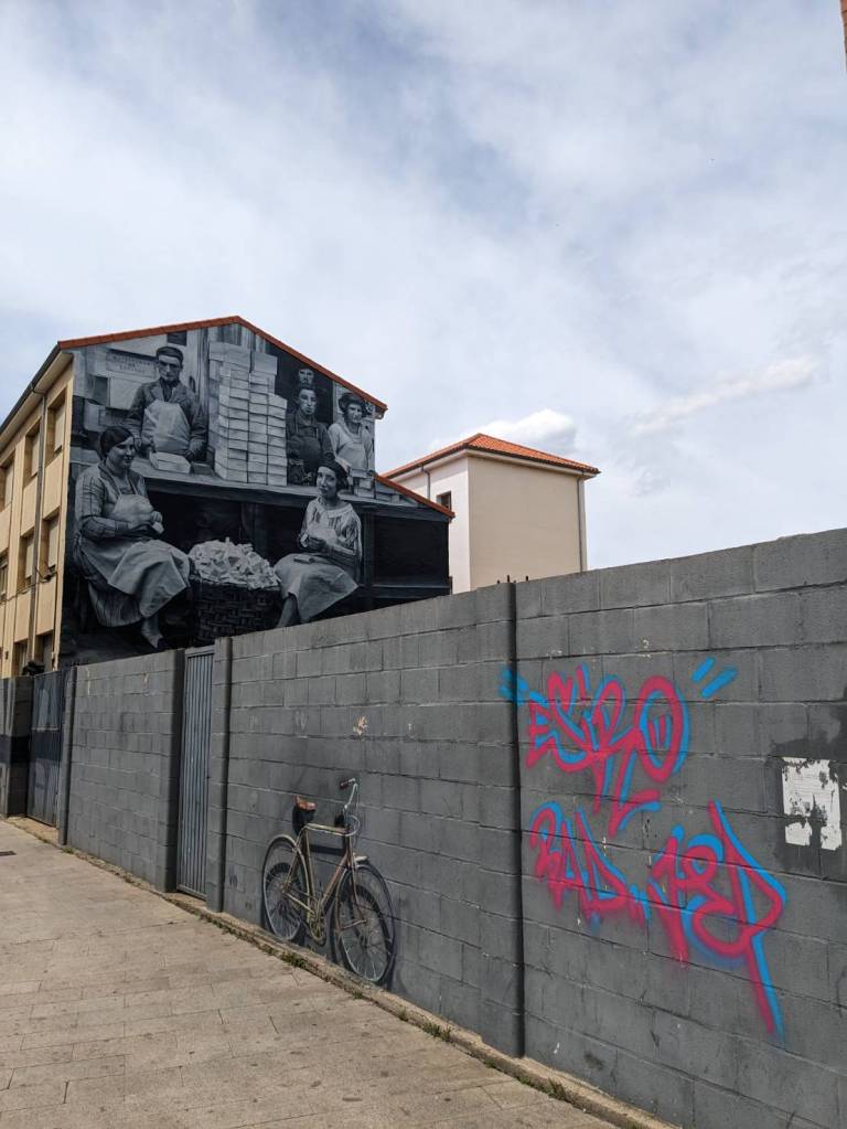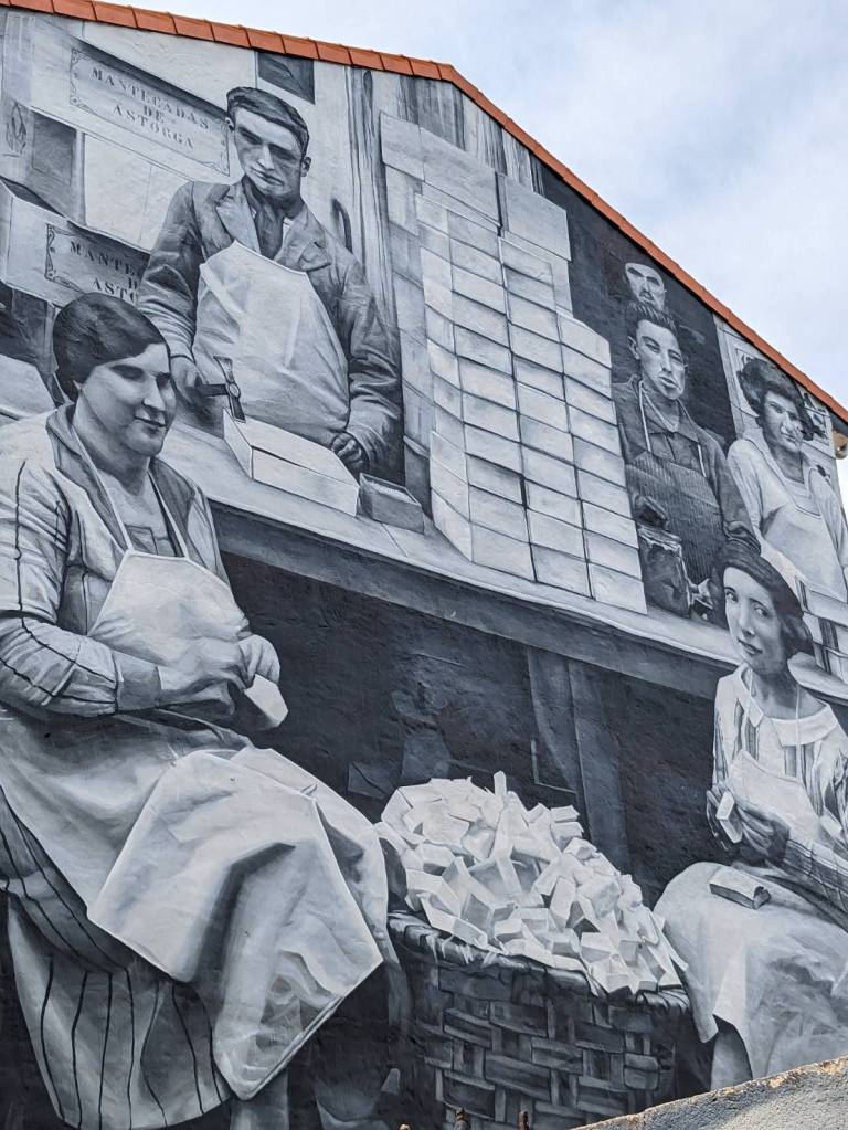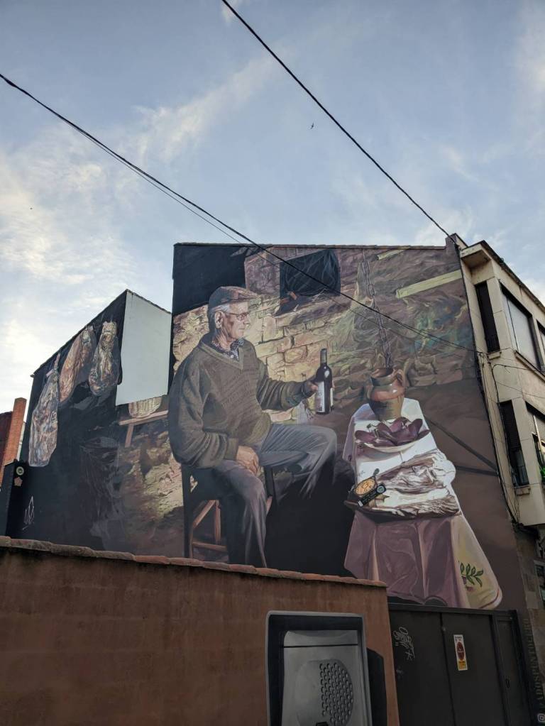 繞回市區,有看到描寫火腿店主人家日常的壁畫。