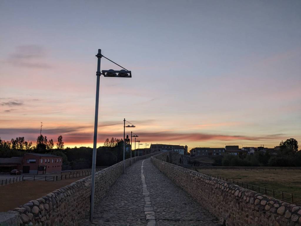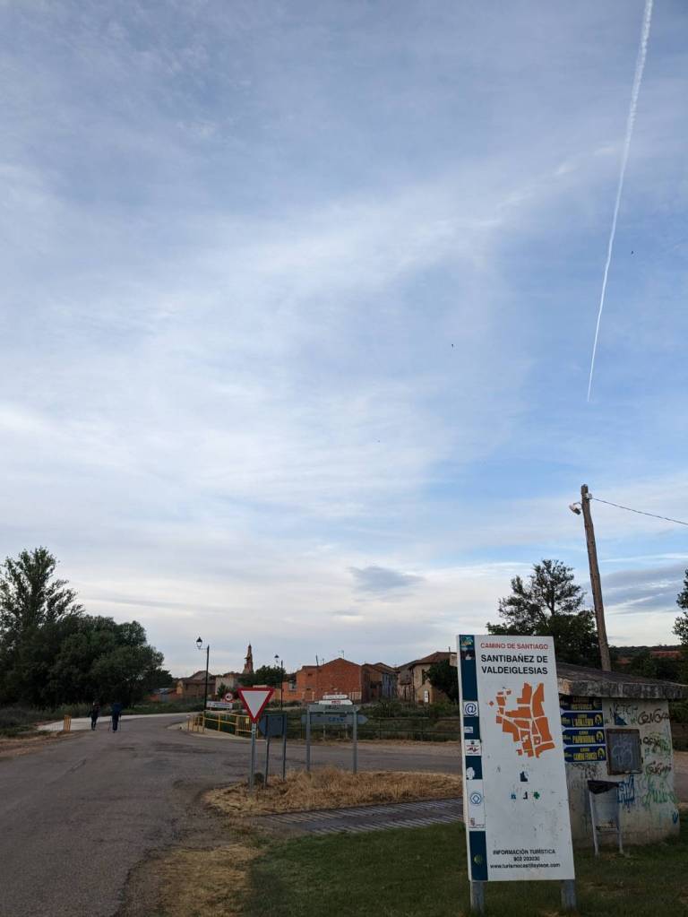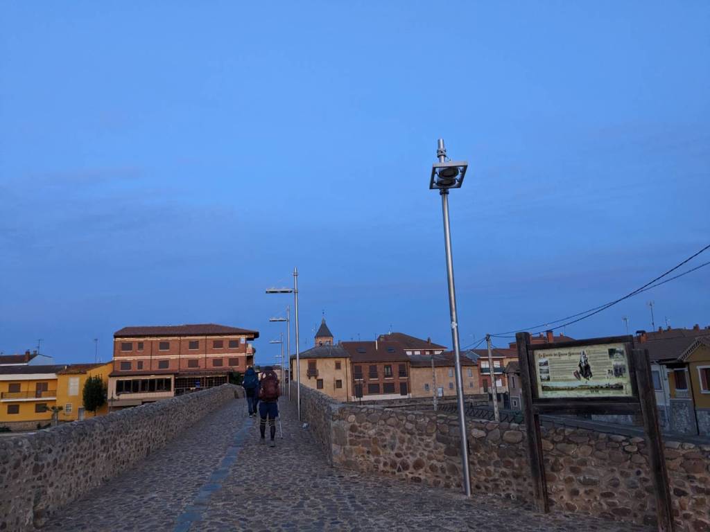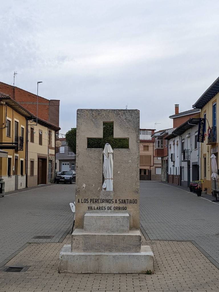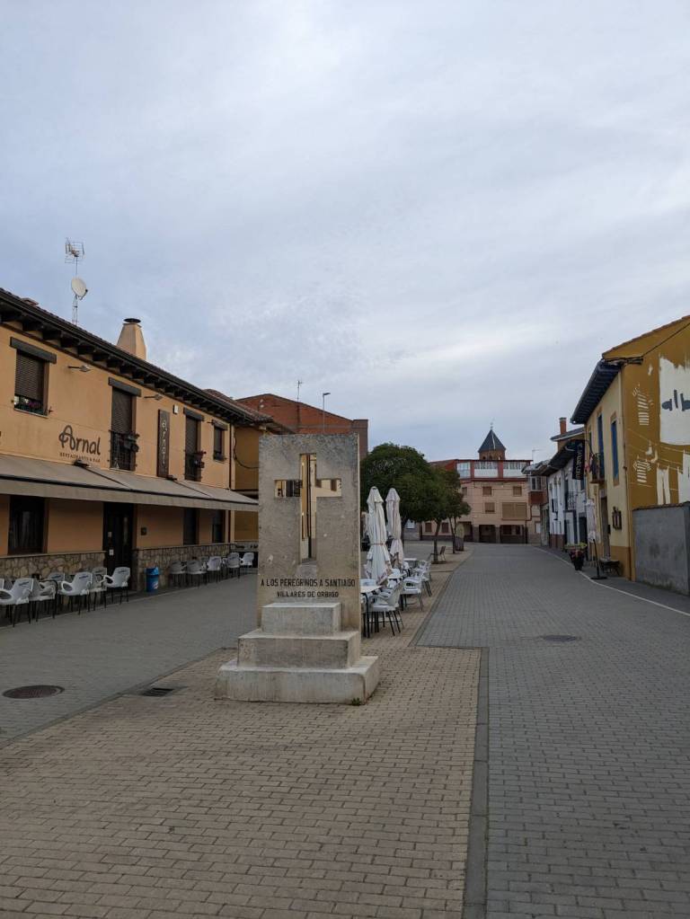 先是走了4公里的田野,7點半經過小鎮–「比亞瑞斯德奧爾比戈」(Villares de Orbigo)。小城送給所有朝聖者的紀念碑。