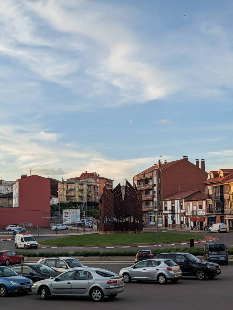 從馬路圓環可遠望「阿斯托加主教宮」(Palacio de Gaudí Astorga)的尖塔。