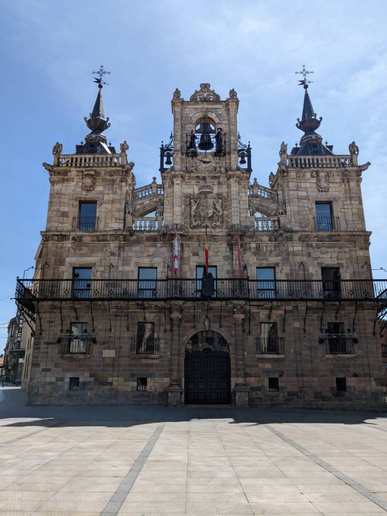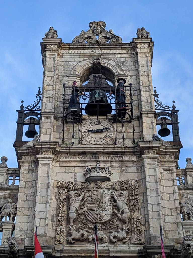 市政府大樓– Ayuntamiento de Astorga,她就位於「西班牙廣場」(Plaza Espana)南側,這是一座建於 17世紀的「萊昂巴洛克」風格的建築;在主立面上有格外醒目的皇家盾形紋章和時鐘,尤其是有每小時用木槌打鐘的兩個自動人偶,分別是代表Juan Zancuda與Colasa。