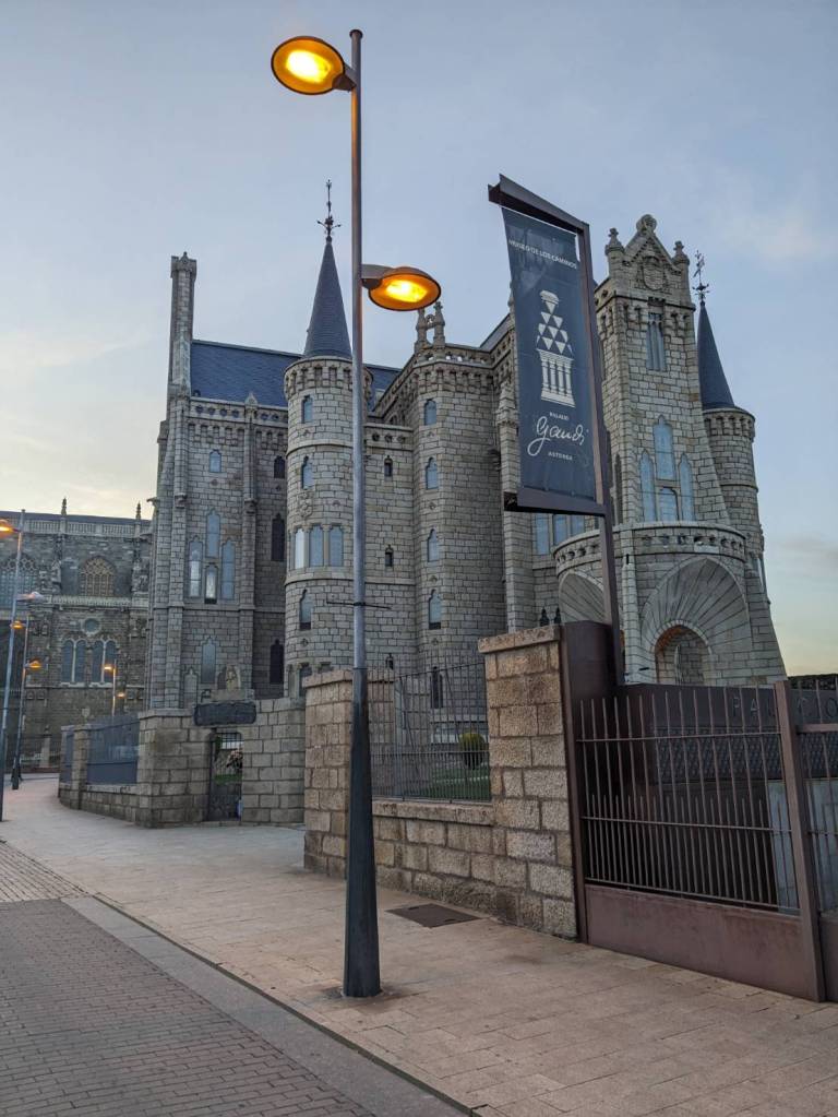 接著在外面欣賞「阿斯托加主教宮」,她原來的建築在19世紀毀於火災,當時的「格勞主教」決定委託他的好友–西班牙名建築師「安東尼·高第」(Antoni Gauti)設計,蓋了20幾年,最後在1913年完工。
