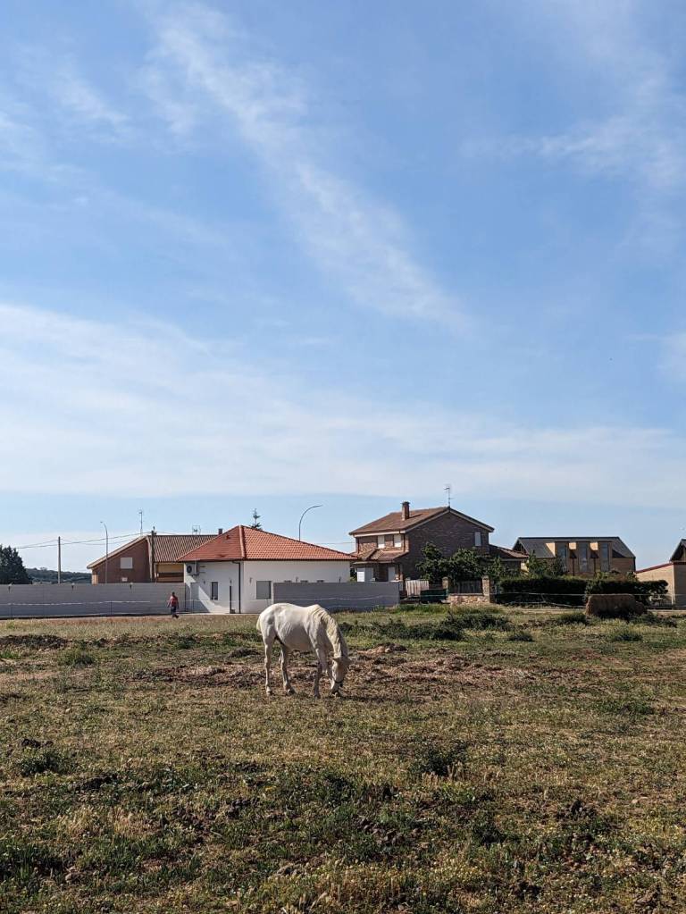 10:50分進入「聖胡斯托德拉韋加」,忽見一匹白色駿馬出現在草地上悠閒地吃著草。