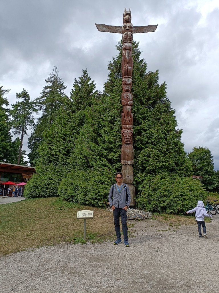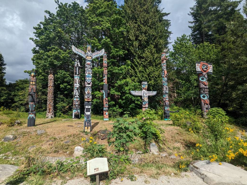 抵達第二個休憩區–「圖騰柱」(Totem Poles),代表著「溫哥華」當地文化與原住民傳統,在印第安的村落中,多立有「圖騰柱」。