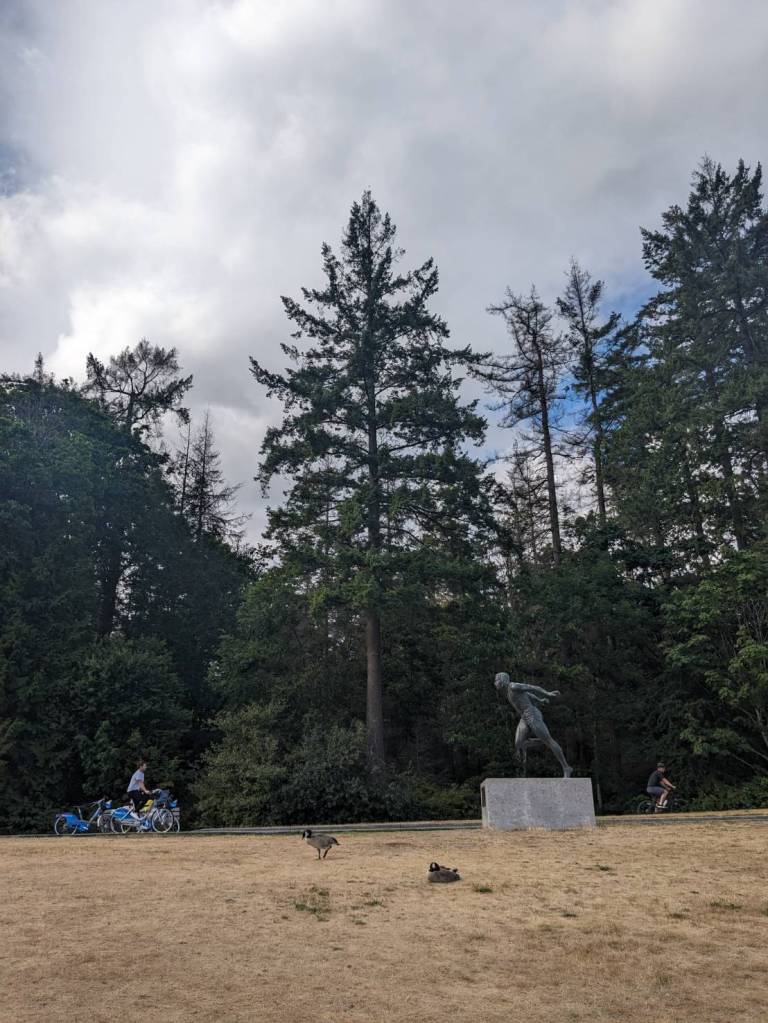 右邊是「哈利傑若米雕像」(Harry Jerome Statue),他是1871年至1971年間的「不列顛哥倫比亞省」(B.C.省)傑出運動員,於1960年至1966年間創造了6項世界紀錄。