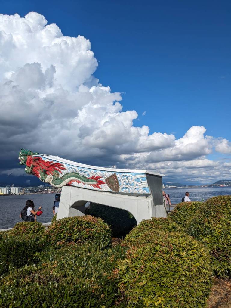「S.S. Empress of Japan Figurehead Replica」,這裡是拍攝北邊山脈及「獅門大橋」(Lions Gate Bridge)的絕佳位置。