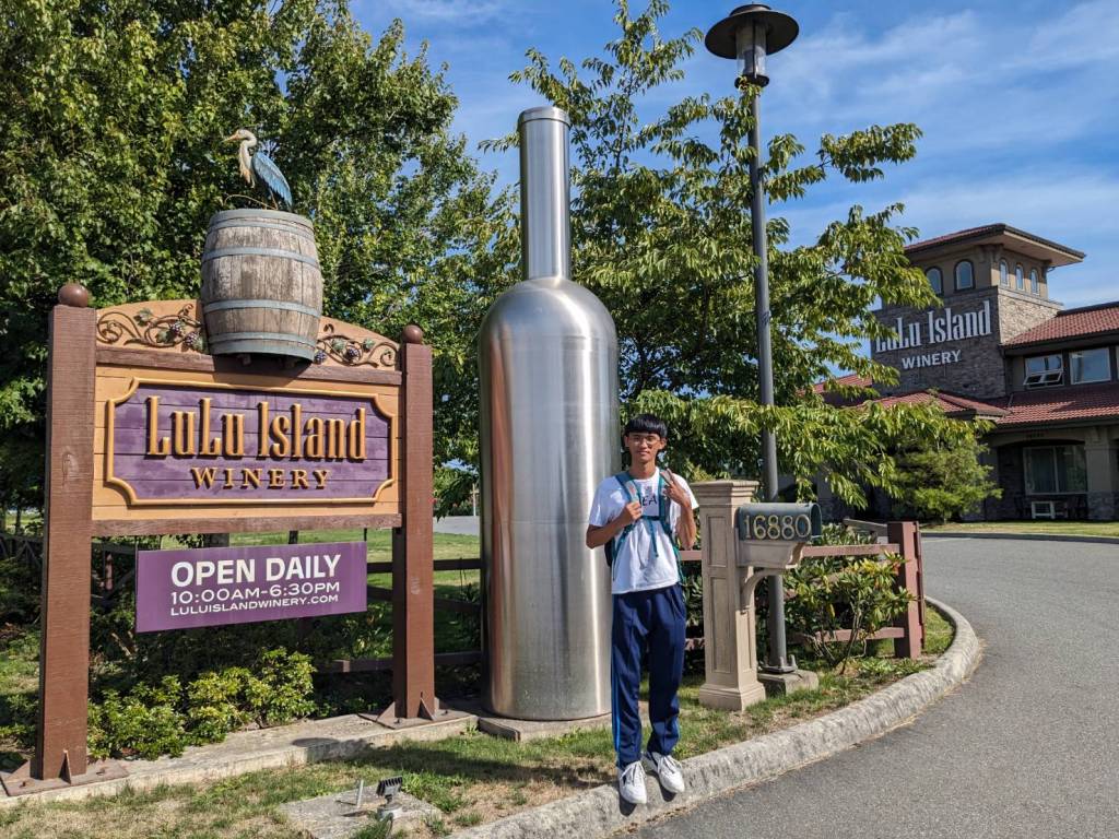 今天我們在市中心的「Roots」等小孩子們下課後,就直接搭「加拿大線」到「列治文市」(Richmond)去參觀台灣移民經營的「鹿島酒莊」(LuLu Island Winery),這也是我們第一次到「列治文」;這城市位於較為低地的「魯魯島」(Lulu Island)上,這裡的華裔人口蠻多的,到處可看到中文招牌。我們首先搭「空中列車」到「阿伯丁站」(Aberdeen),要在這裡轉乘「410號」公車,車程約30分鐘。