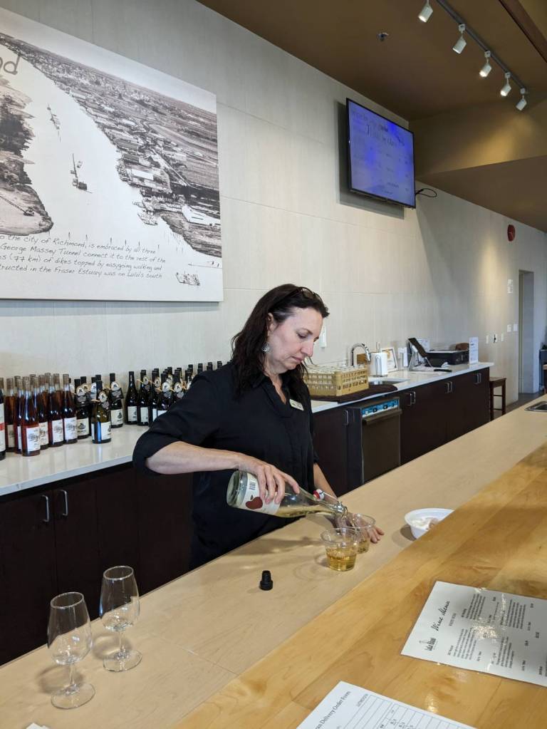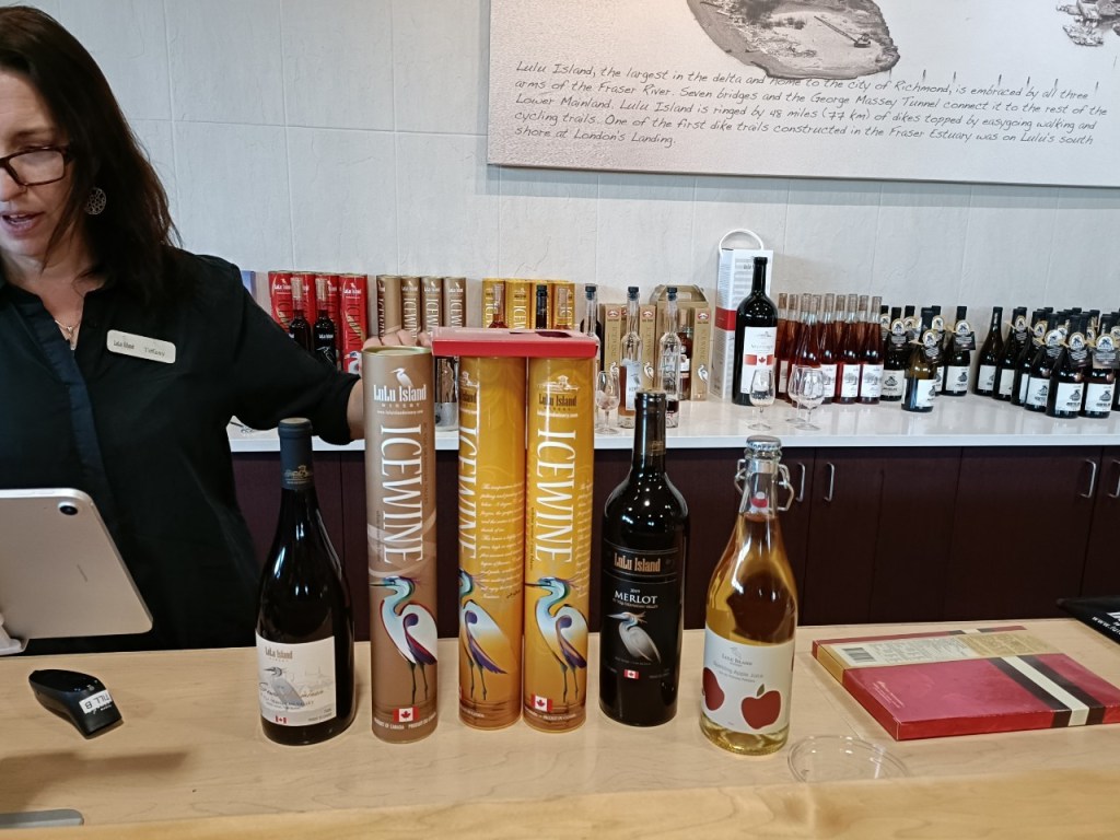 進門後,終於看到兩位員工,當然客人只有我們這一組。其中一位員工Tiffany過來接待我們,她的服務親切又專業,引領我們試飲三種冰酒,並說明購物滿300元加幣即可免費配送回台灣。