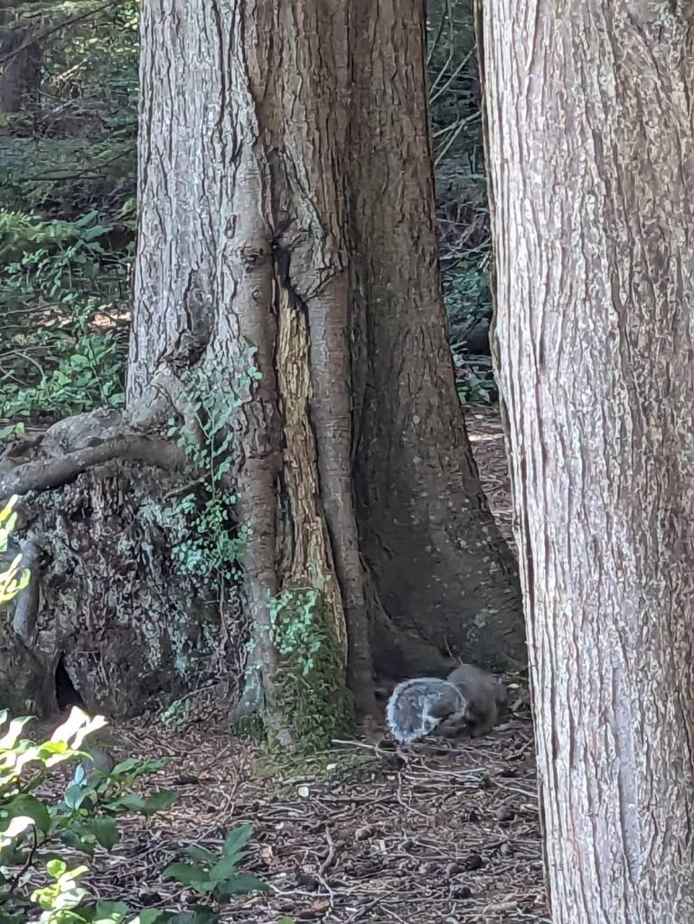 我們選在湖邊的長板凳休息野餐,不經意發現一隻灰松鼠在我們後面徘徊,或許在等著吃掉在地上的餅乾屑吧。