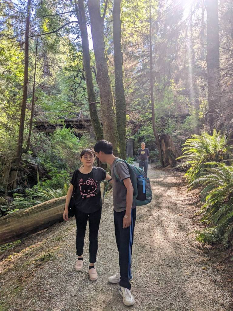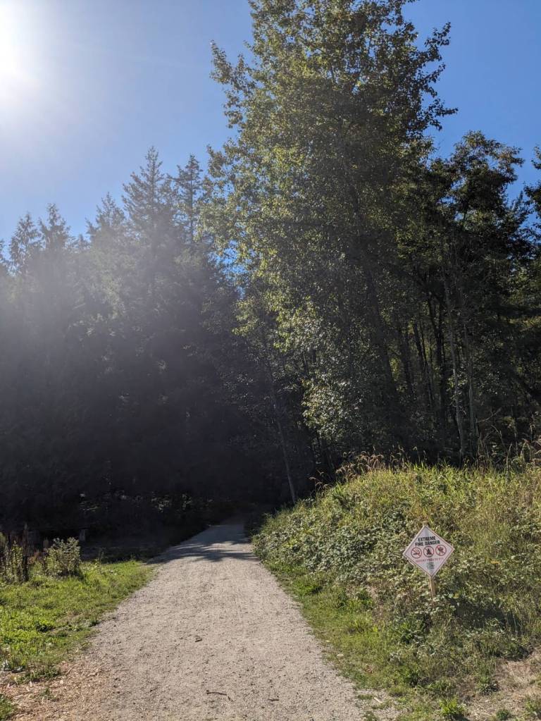 這是今天我們散步的起點–「南灣步道」(South Creek Trail),相較於空曠地的日曬,走進去樹蔭小徑真是涼爽。