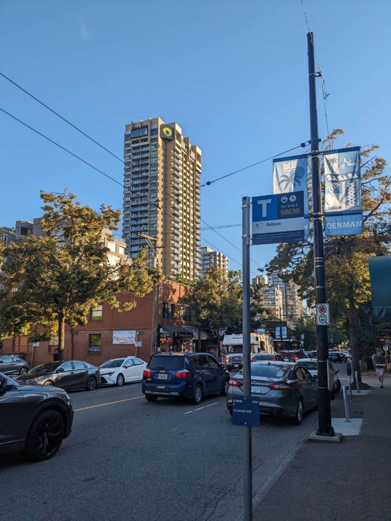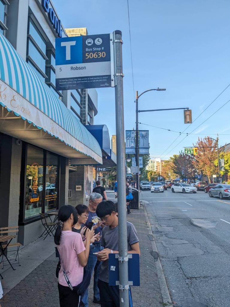 傍晚7點在「Denman Street」等「5號公車」,準備返回溫暖的家。