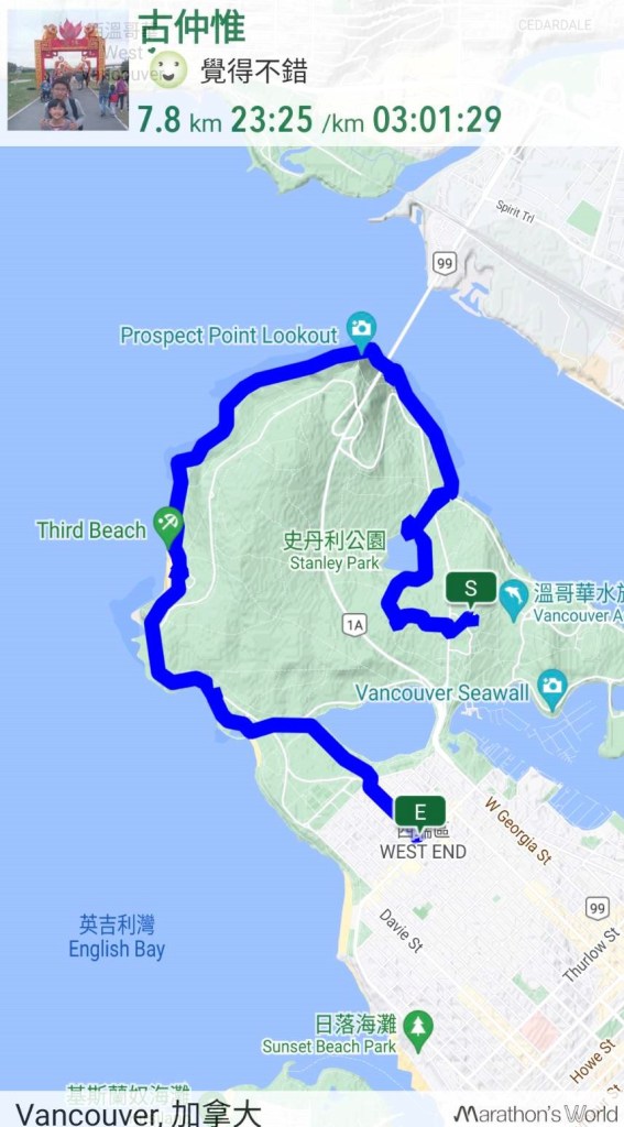 今天下午共健行了7.8公里,幾乎繞了「史丹利公園」一圈,天氣晴朗又涼爽,走起路來真是舒服。