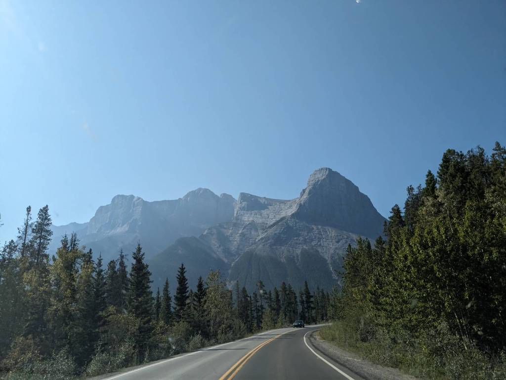 上午11點,我們從住宿旅館–Silver Creek Lodge開車出發,越過鐵道,穿越「坎莫爾」(Canmore)鎮區後,向西沿著「742號公路」往山區前進。