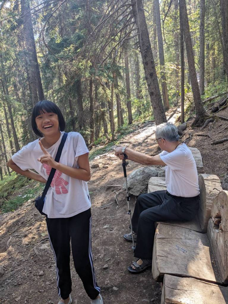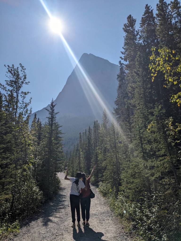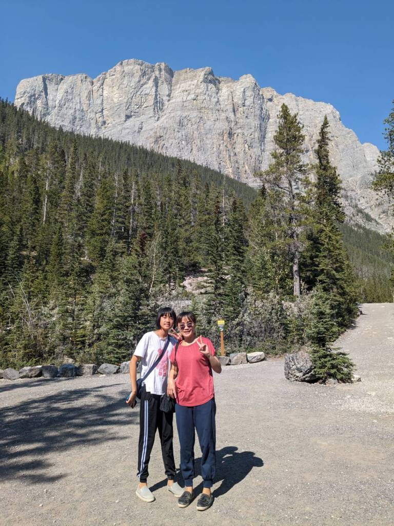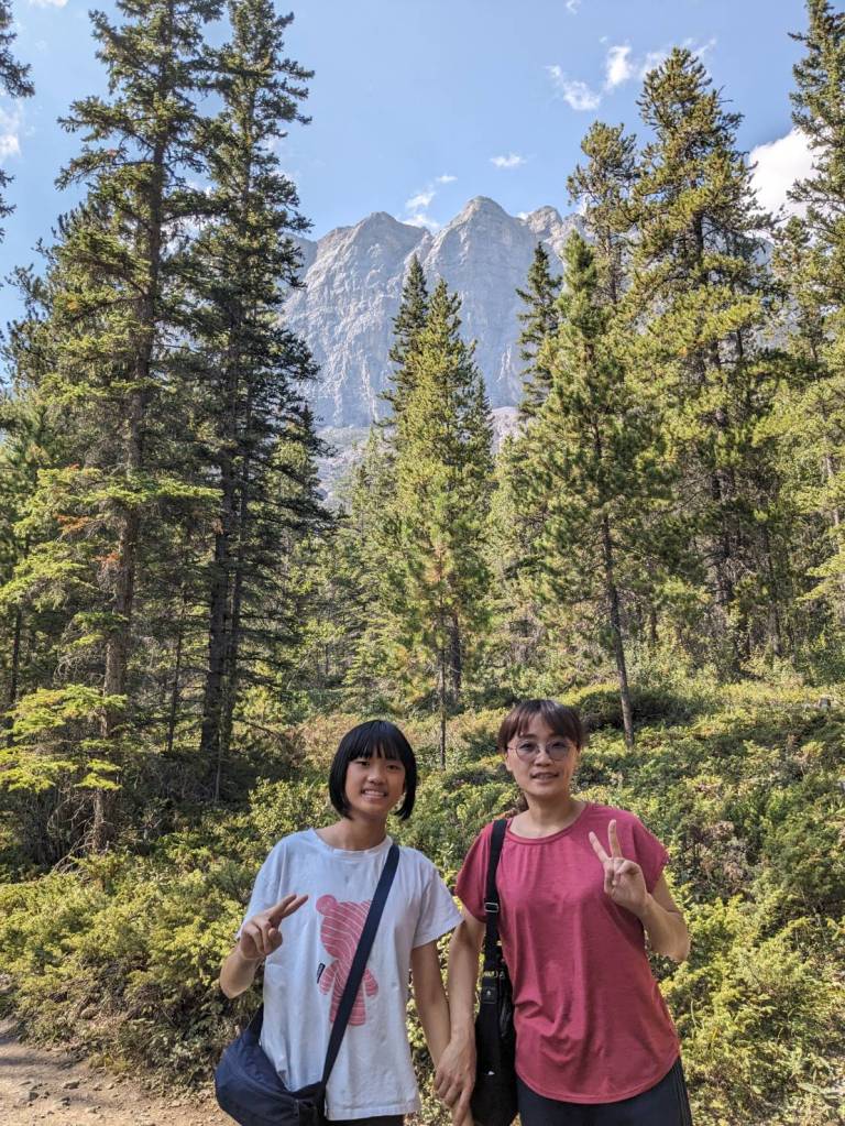 前方的Ha Ling Peak越來越近了,代表目的地即在眼前,母女倆開始開心了起來。