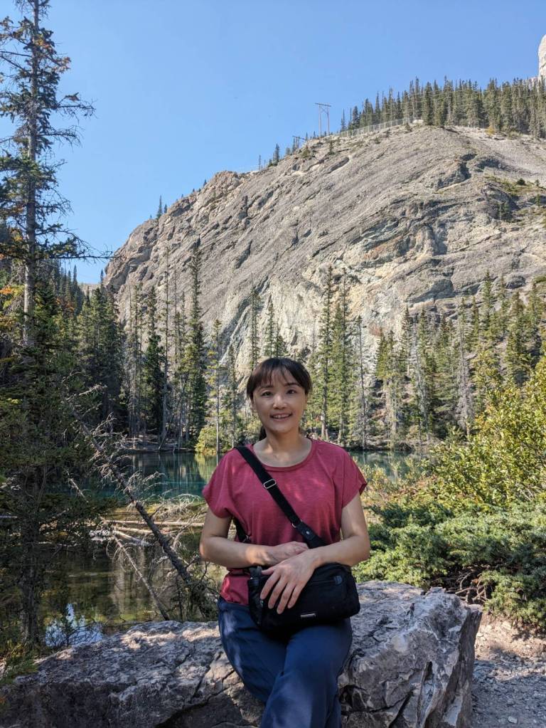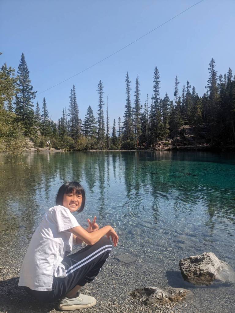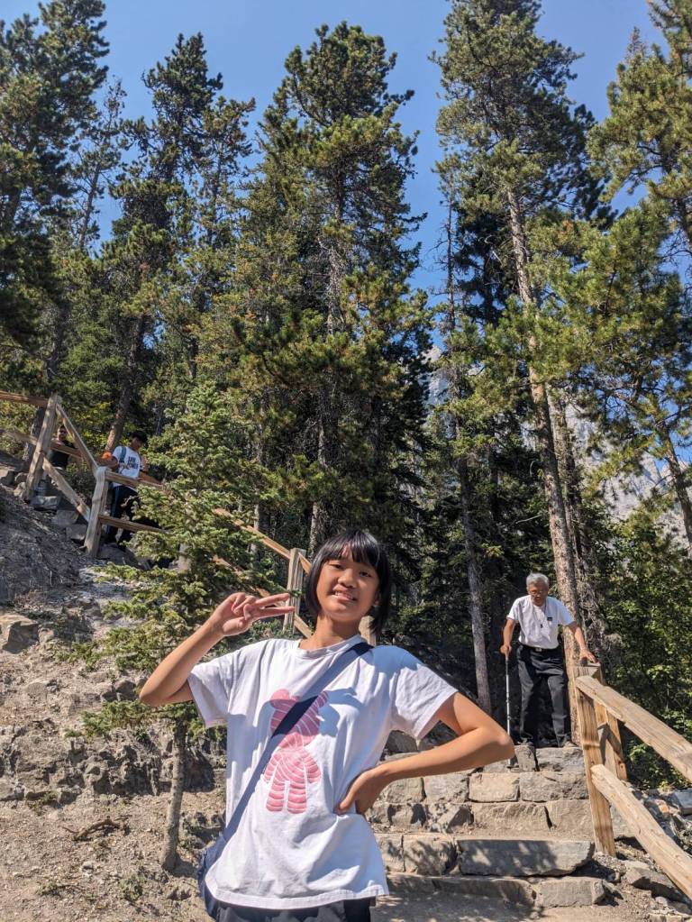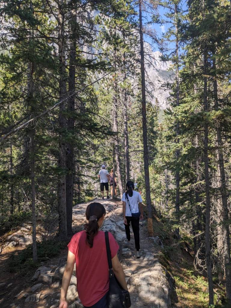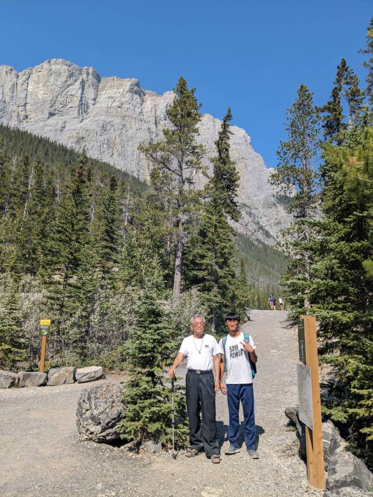前方的Ha Ling Peak越來越近了,代表目的地即在眼前,母女倆開始開心了起來。
