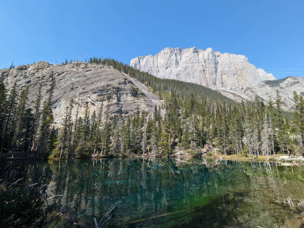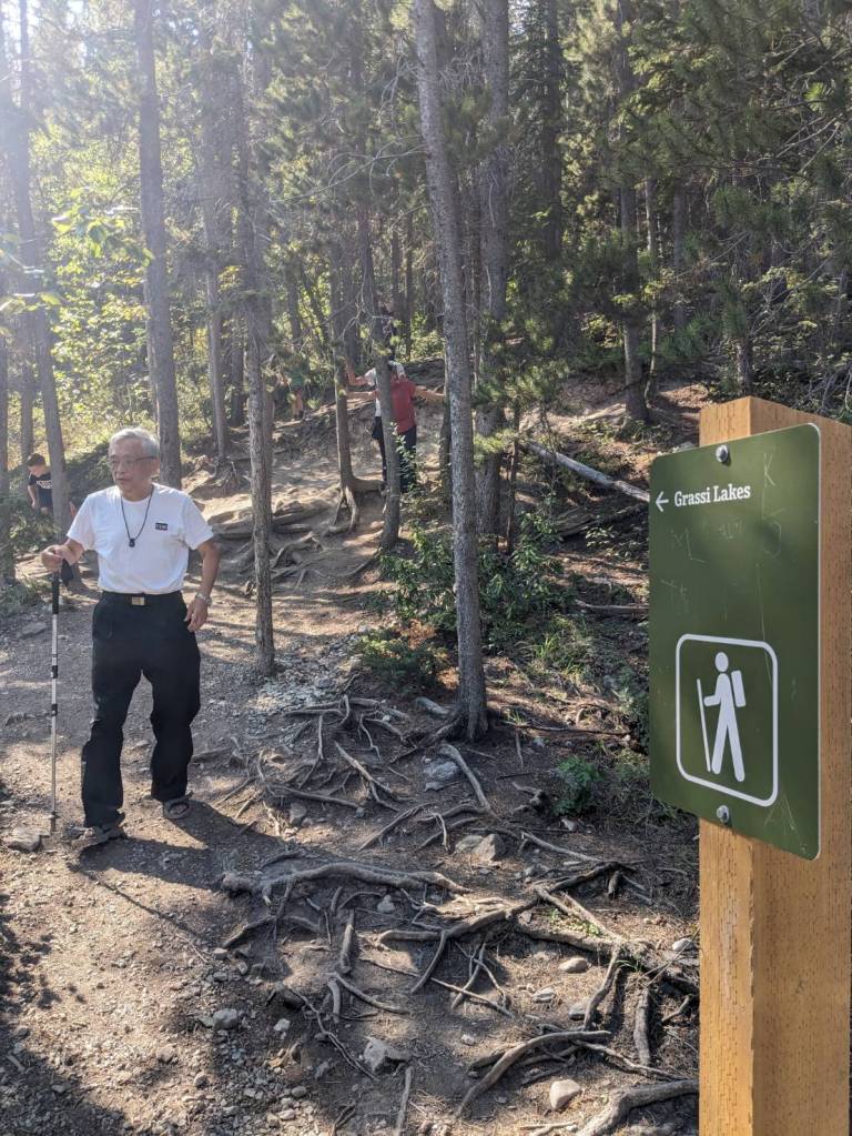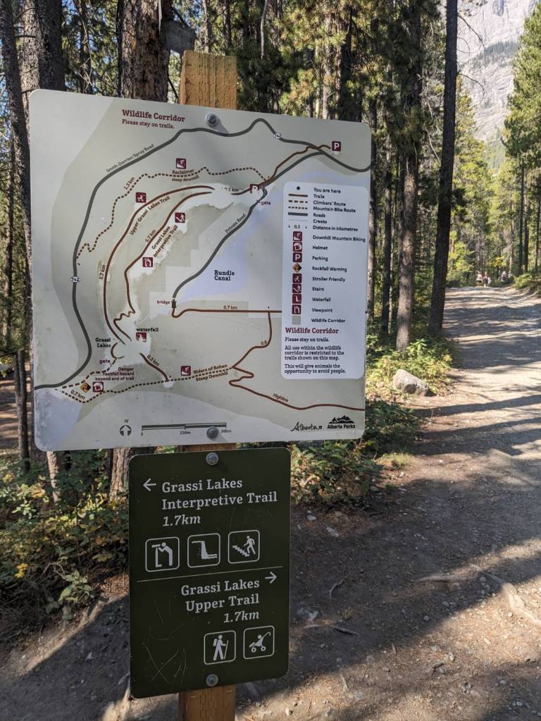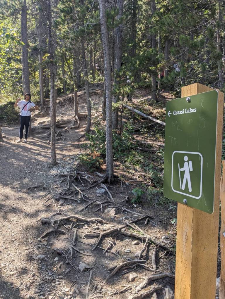 我們去程選擇了較好走的「Upper Grassi Lakes Trail」,路程約1.7公里就可抵達「葛拉西湖」(Grassi Lakes)。