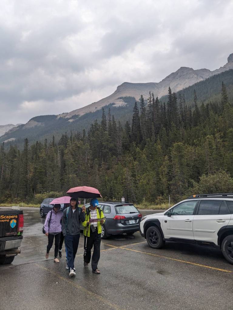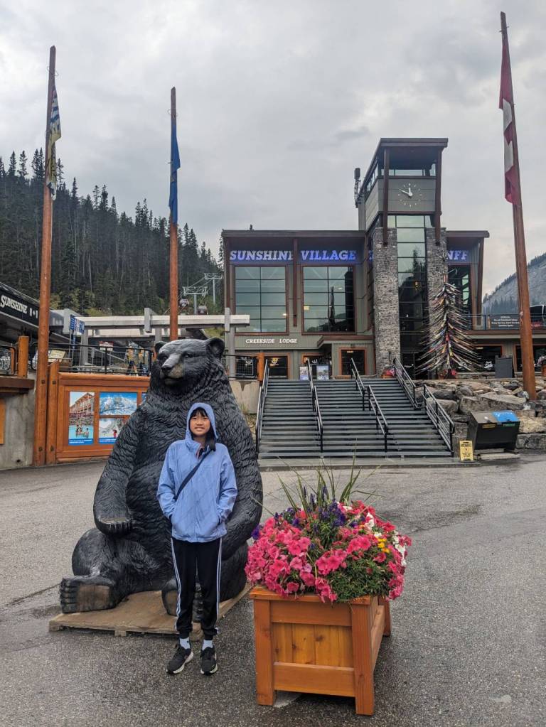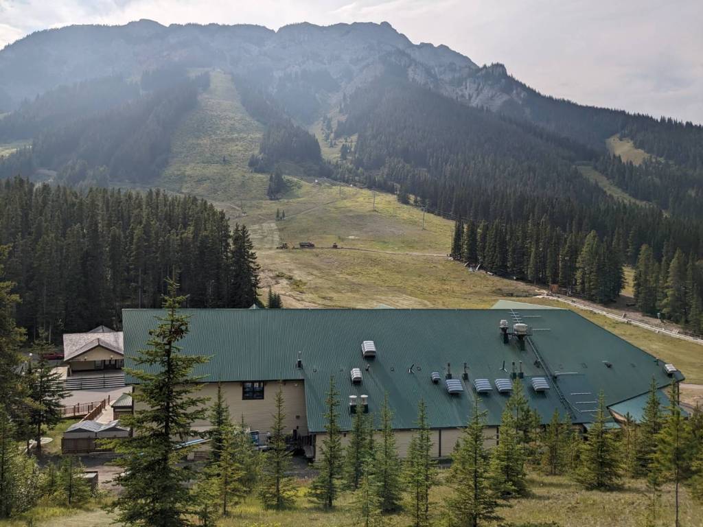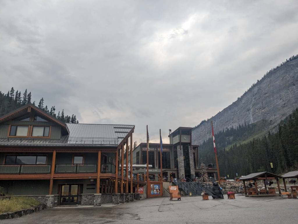 這裡是班夫國家公園三大滑雪場之一,也是幅員遼闊的滑雪度假村,設有多間餐飲和購物場所,但唯一的缺點是乘坐纜車費用很貴,成人是65加幣;今天纜車還有在運作上下山,但對於沒要滑雪的我們而言,下雨的一天又不方便,可能就沒有坐纜車上山的必要了。