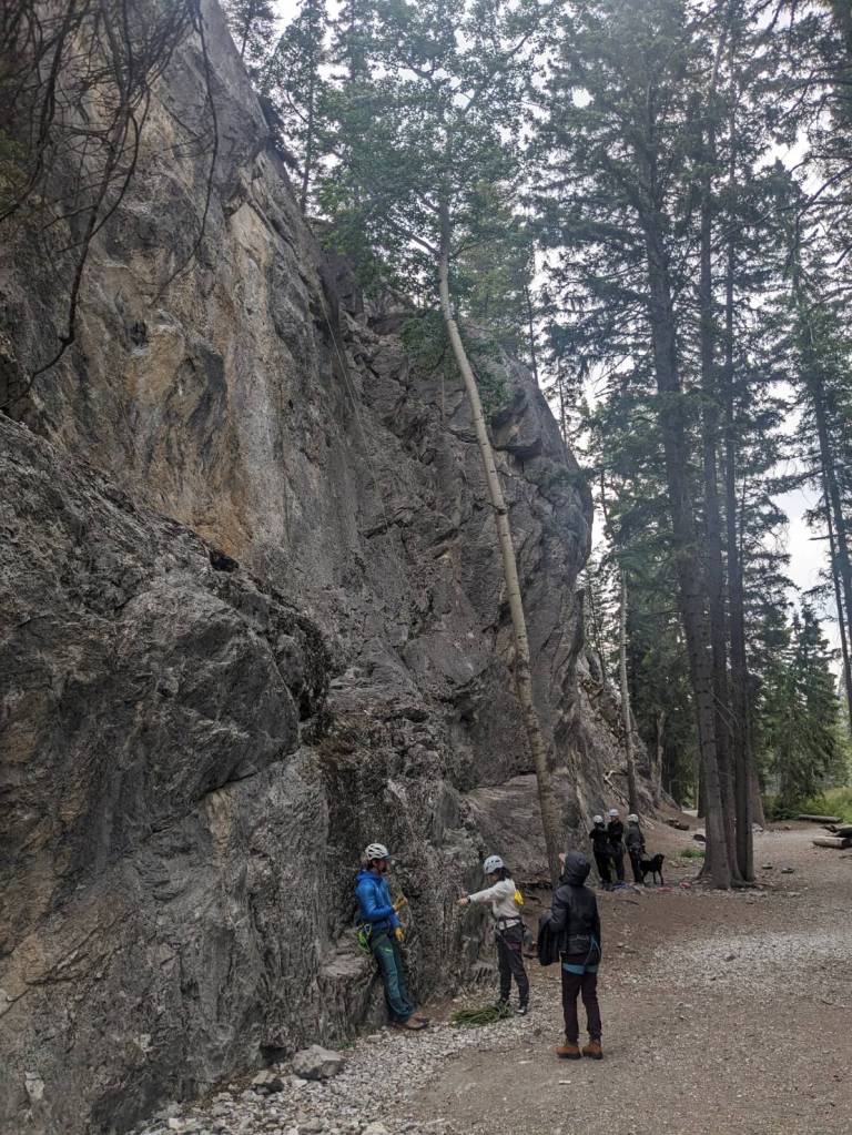 登山小徑入口有幾處攀岩場,可以看到3、4組人在攀岩,還有人帶狗在攀岩的。