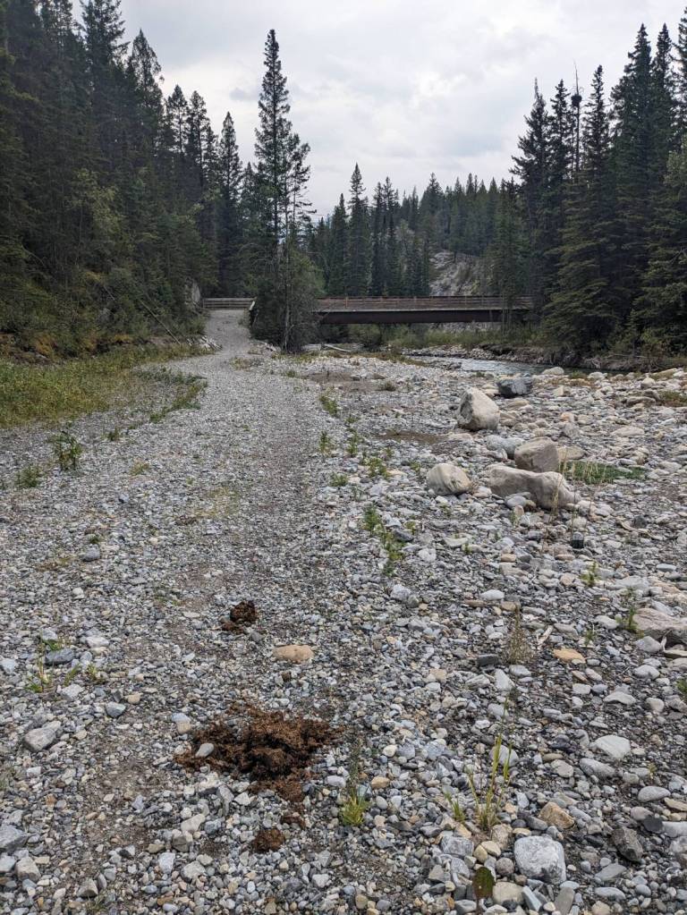 但在小徑沿途有很多動物糞便,沿路又沒其他健行客,所以怕遇到熊的我們還是折返吧!