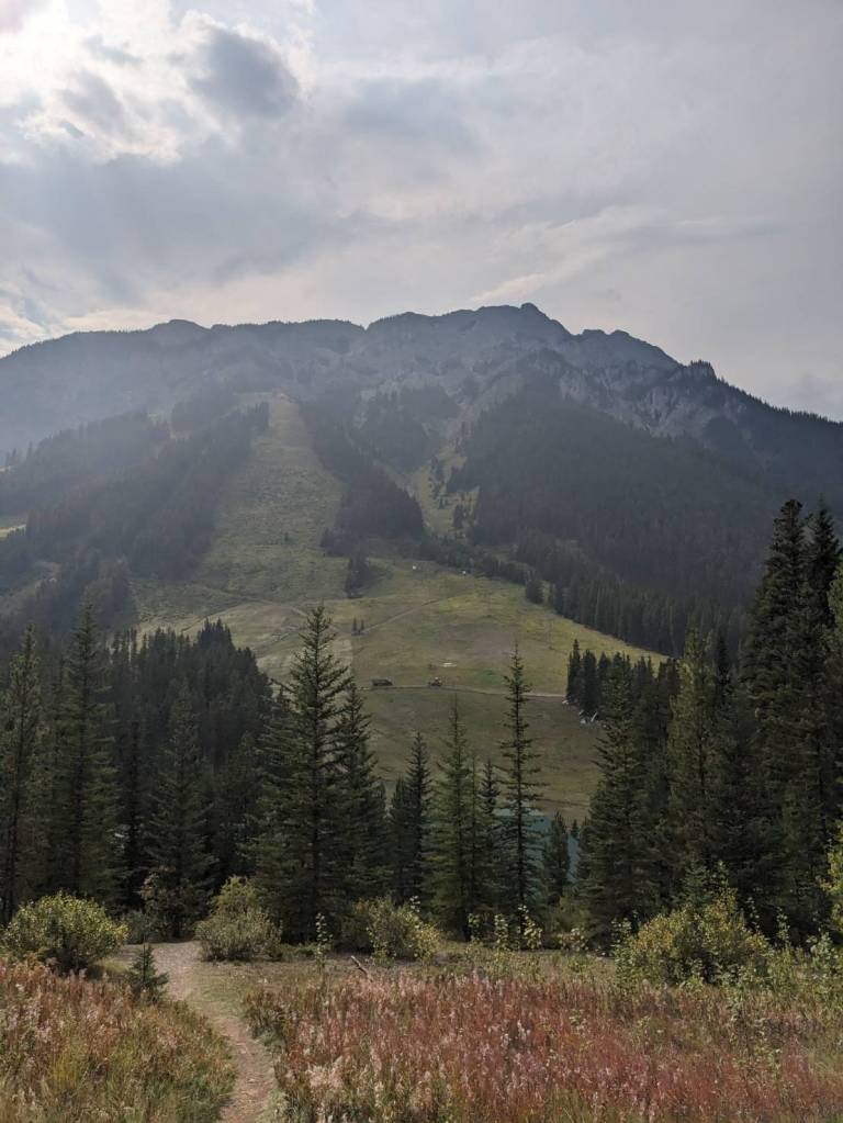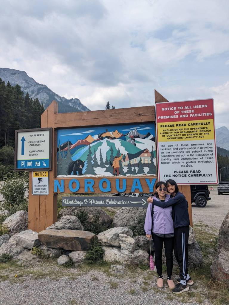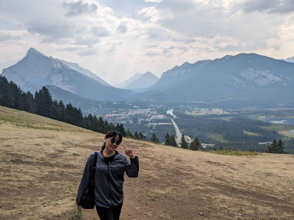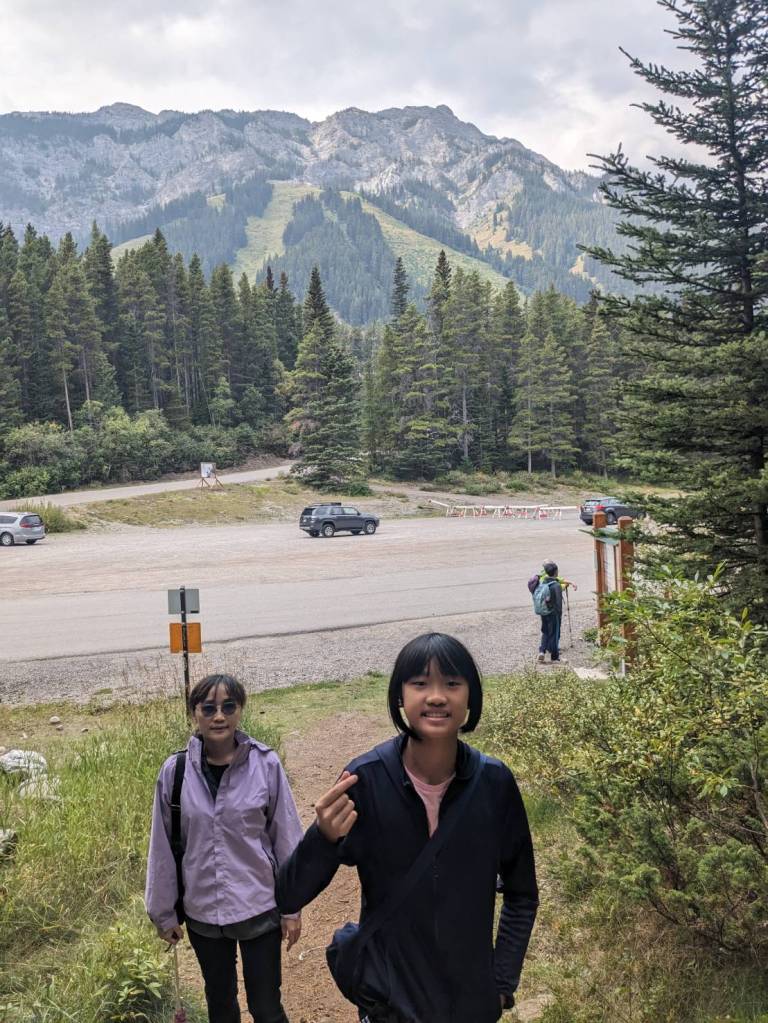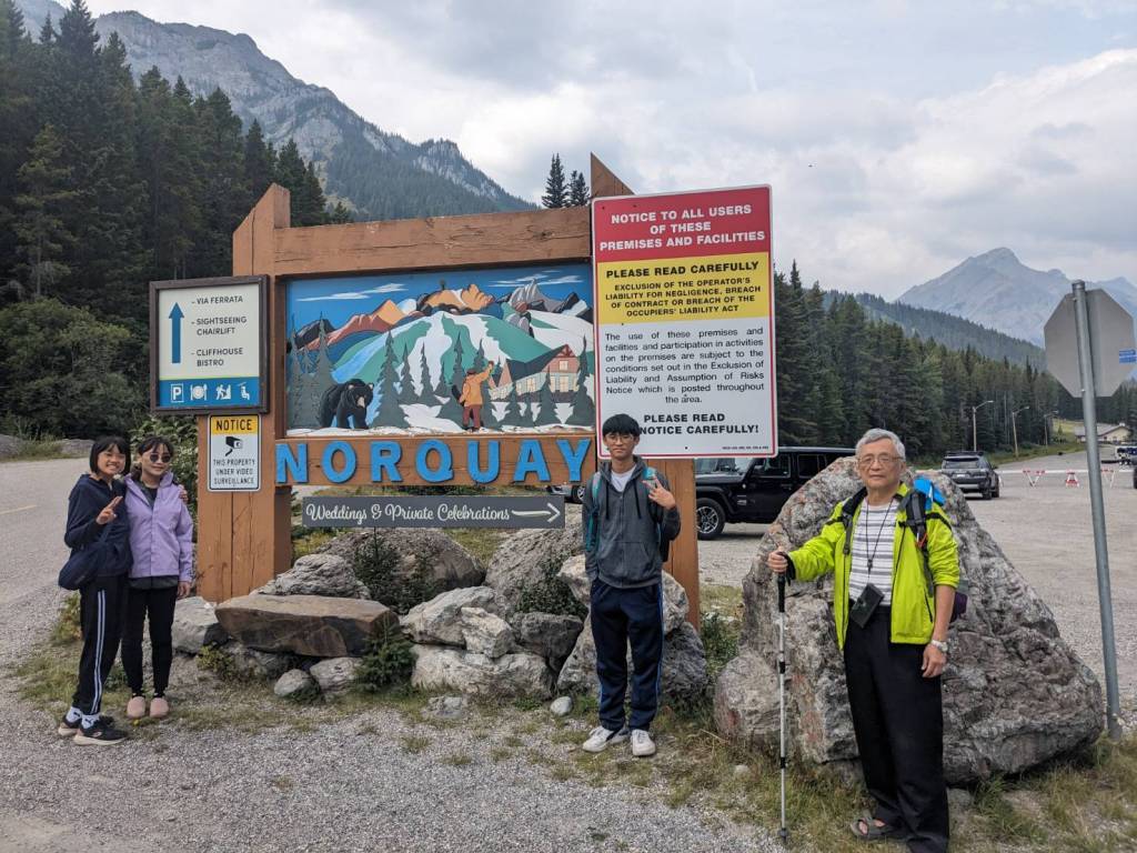 來到滑雪渡假中心–Mount Norquay,她在沒雪的夏天好像沒營業,我們準備走附近的健行步道。