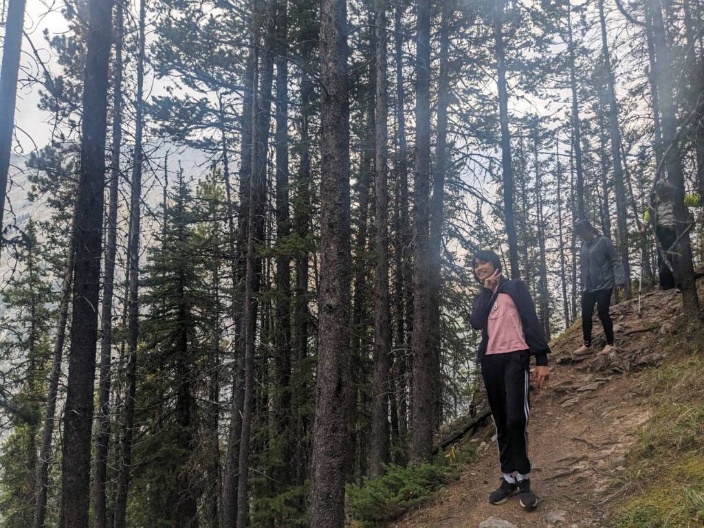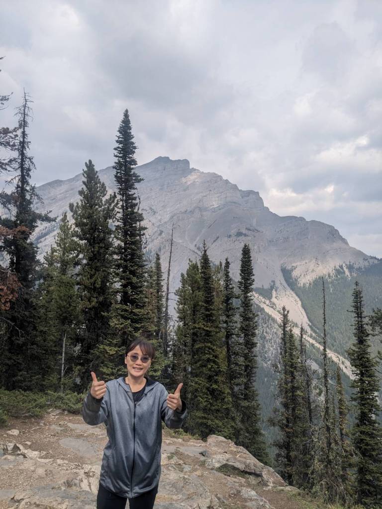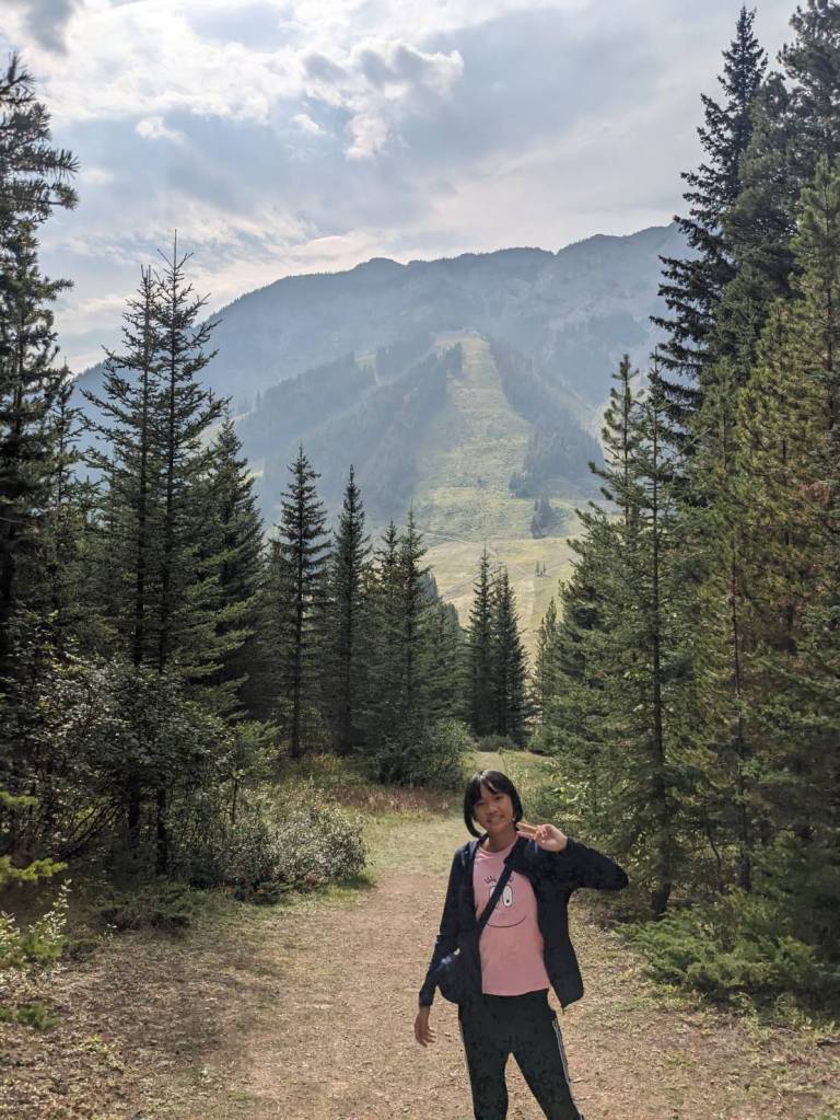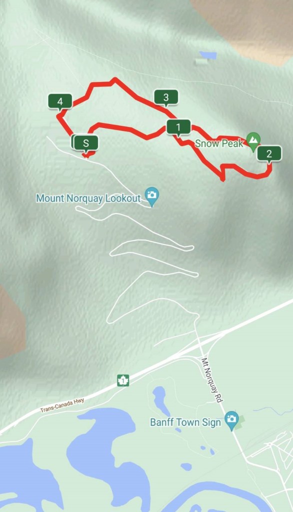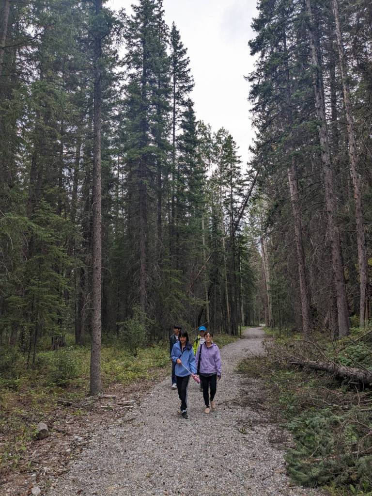 來到滑雪渡假中心–Mount Norquay,她在沒雪的夏天好像沒營業,我們準備走附近的健行步道。