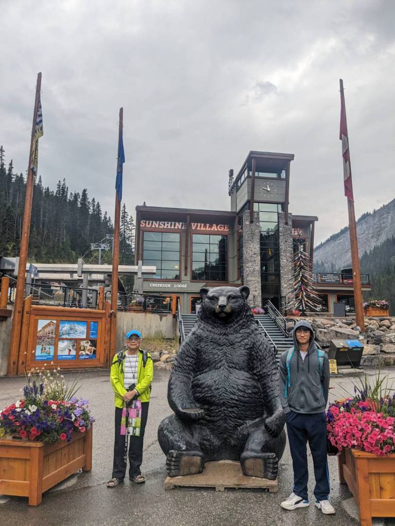 上午11點出發前往「班夫」(Banff)西邊20公里的「陽光草原」(Sunshine Meadows),從「坎莫爾」開車過去為42公里,車程為40-50分鐘,沿著「1號公路」(全名為「不列顛哥倫比亞省1號公路」,它是加拿大不列顛哥倫比亞省的一條東西向公路,屬於加拿大橫貫公路的一部分)到「班夫」後,在行走約8公里的「Sunshine Road」後,即抵達一處滑雪渡假中心–Sunshine Village。